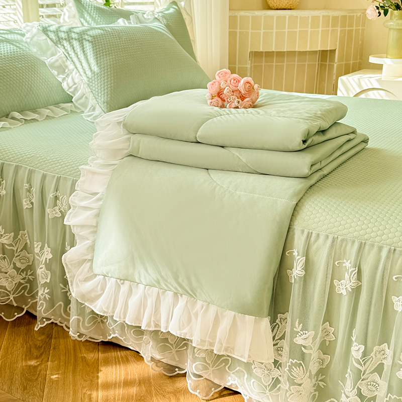 (总)后庭寝室 2026新款冰感豆豆床裙凉席夏被空调被四件套-花语系列,花语-嫩玉,花语-粉色,花语-米色,花语-嫩黄,花语-浅灰,花语-浅蓝,花语-浅紫,花语-水绿