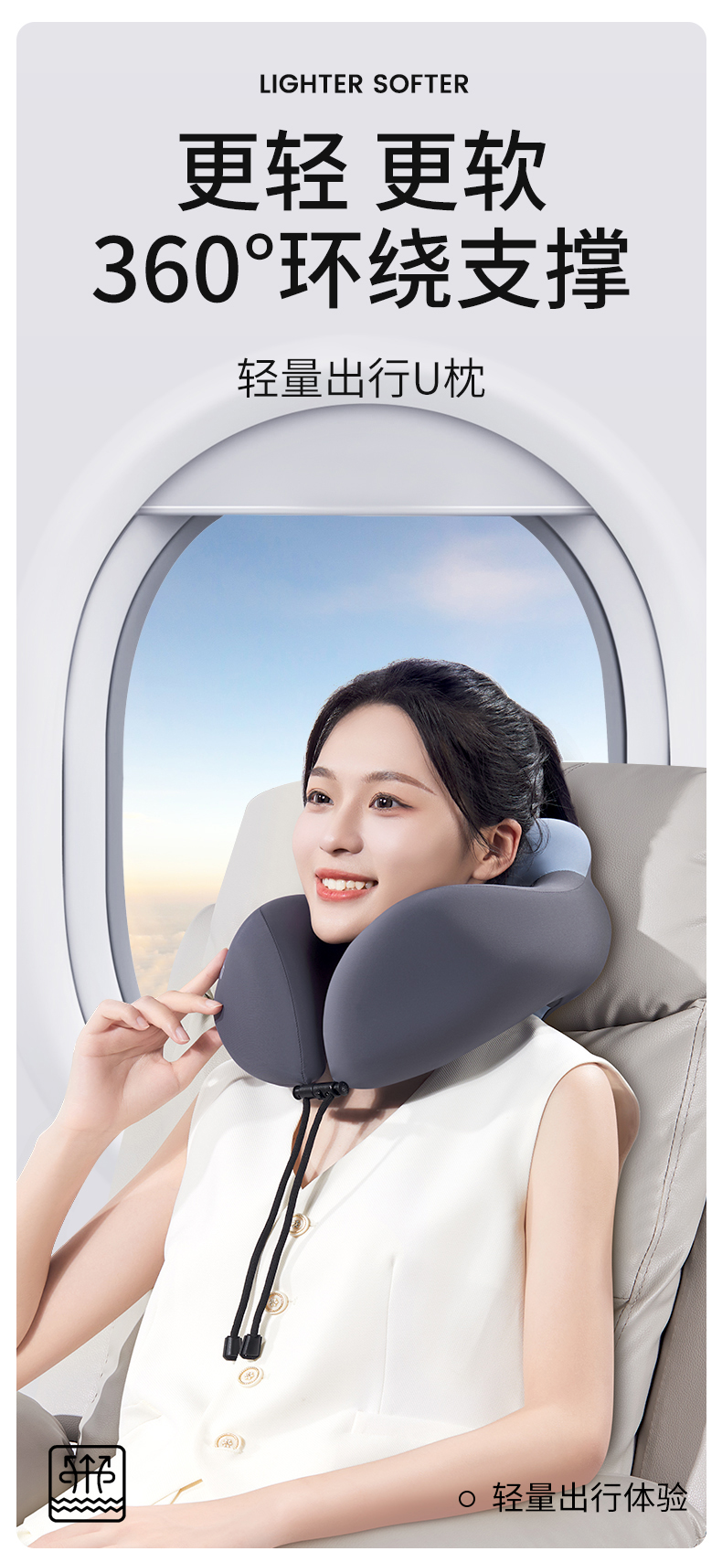 (总)芯辰 2024新款u型护颈枕专用脖套记忆棉飞机枕脖子靠枕学生旅行便携u型枕,粉色,湖蓝色,灰色,柠檬黄
