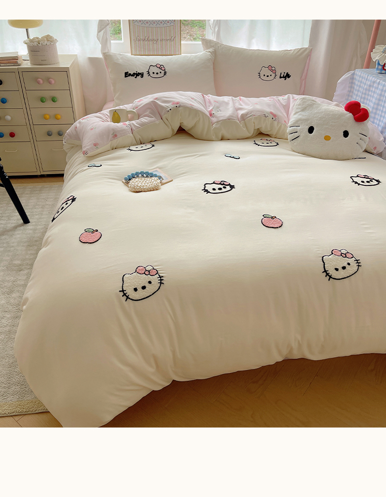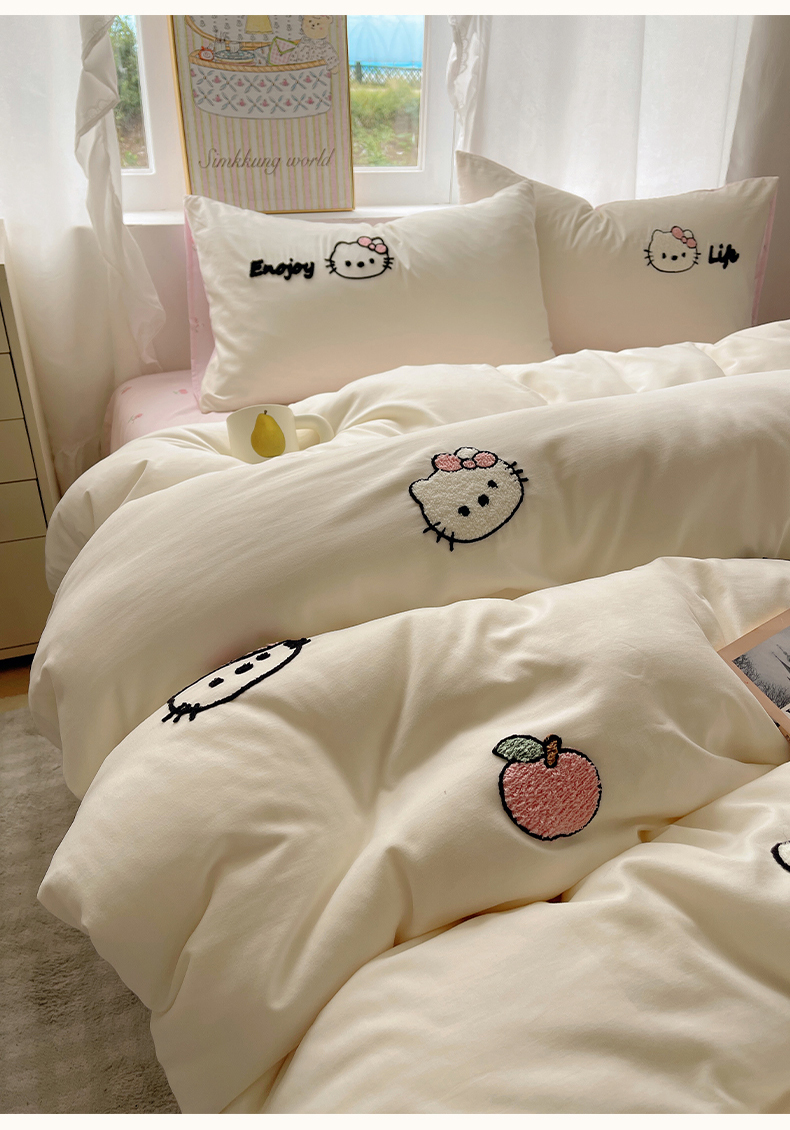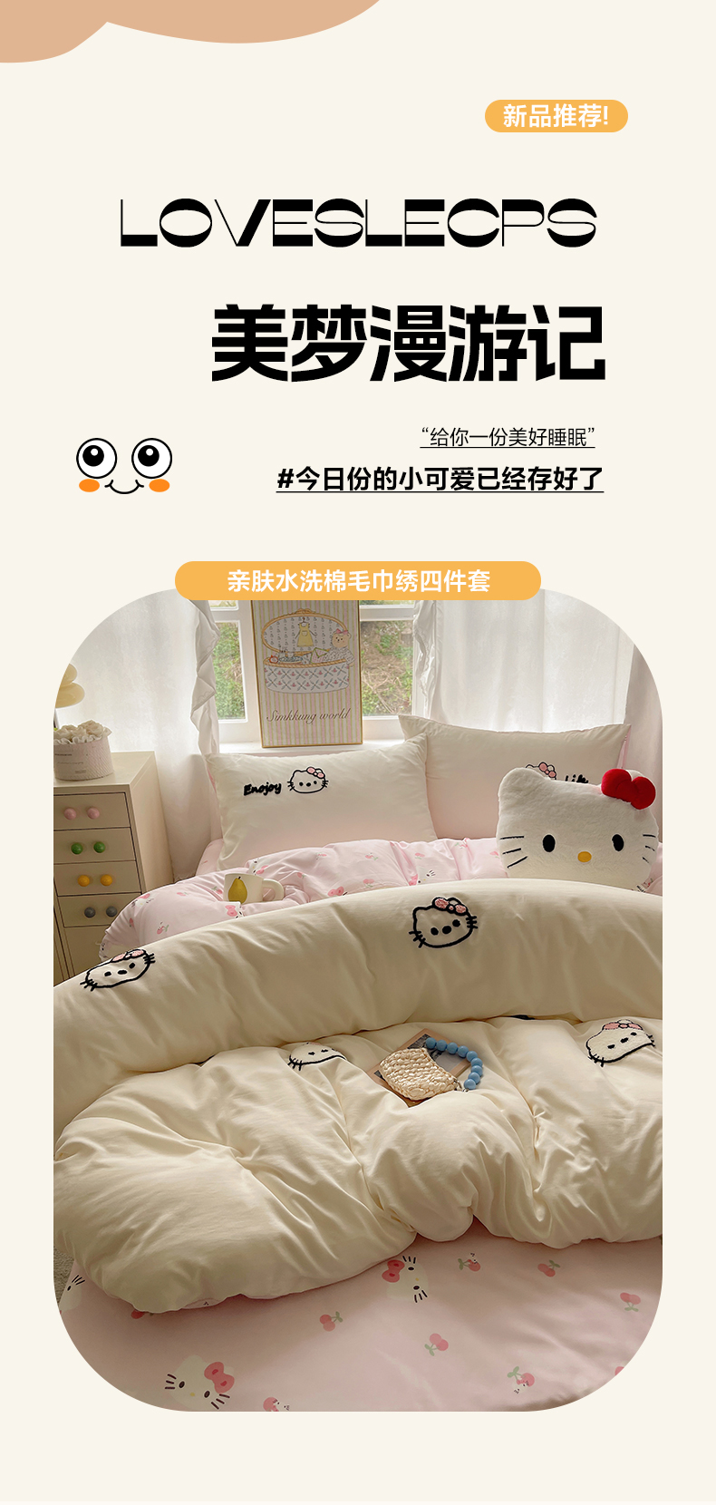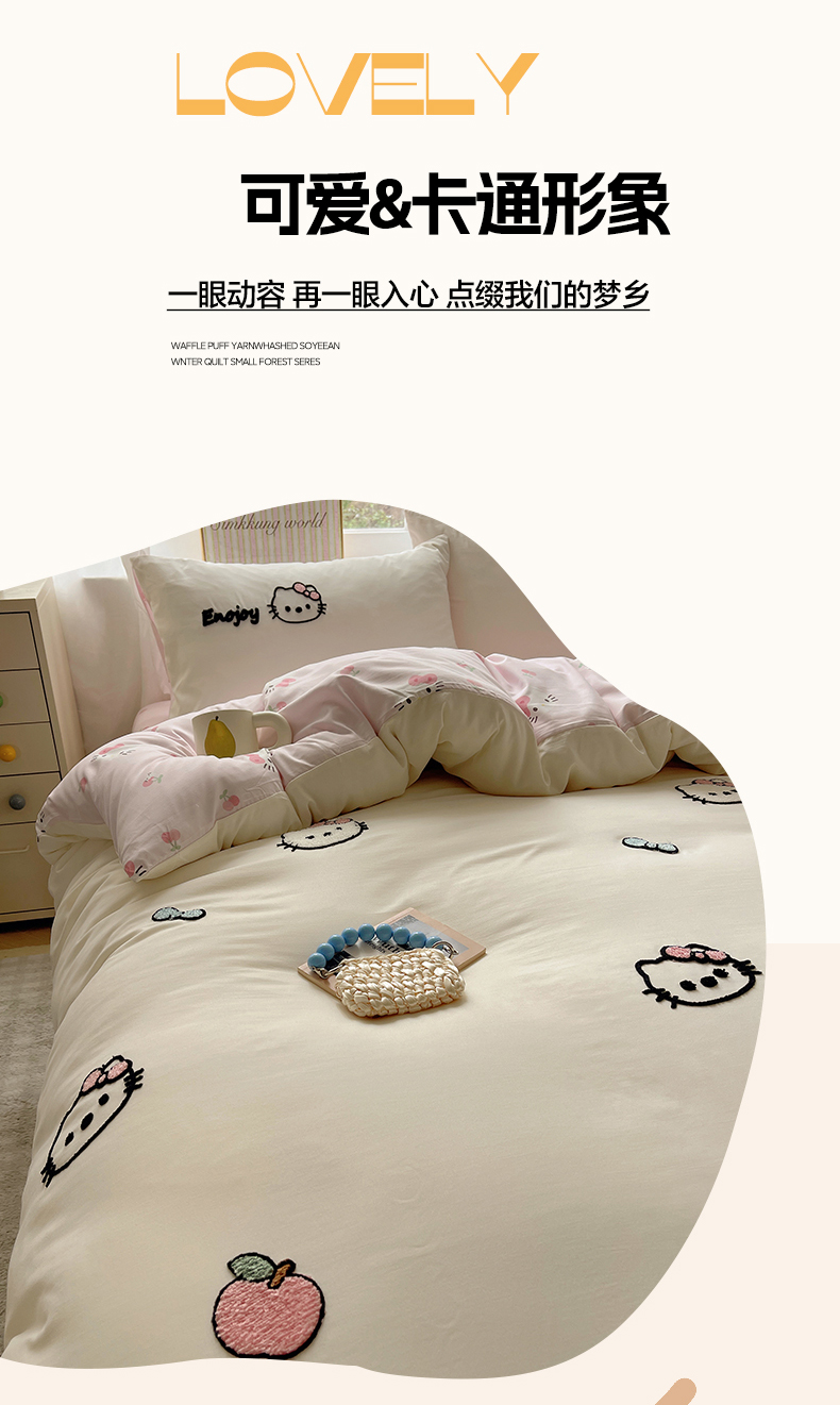 当前位置: 91家纺网 > 商品网购 > 床品套件 > 四件套 > 其它四件套 > 韩都家居 2026春夏新款亲肤舒适毛巾绣四件套(包含买家秀原图) 猫猫爱吃苹果