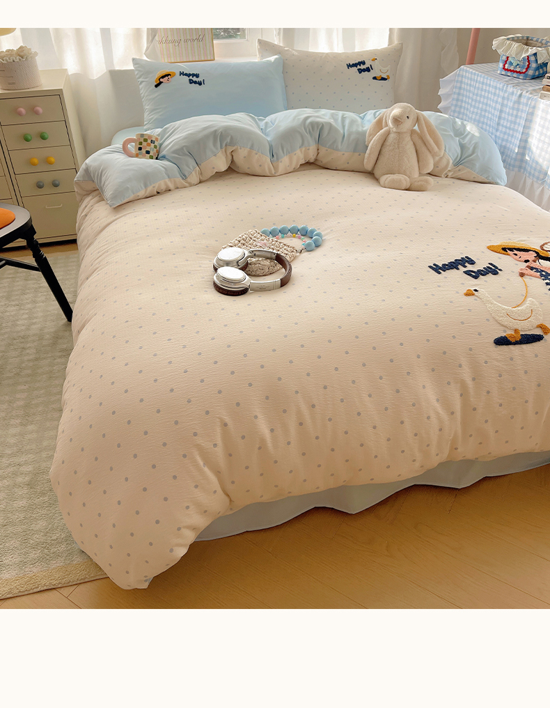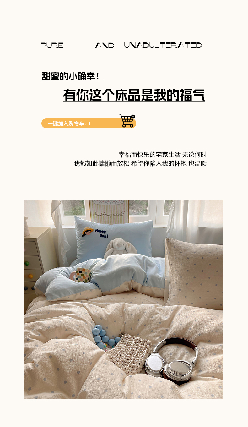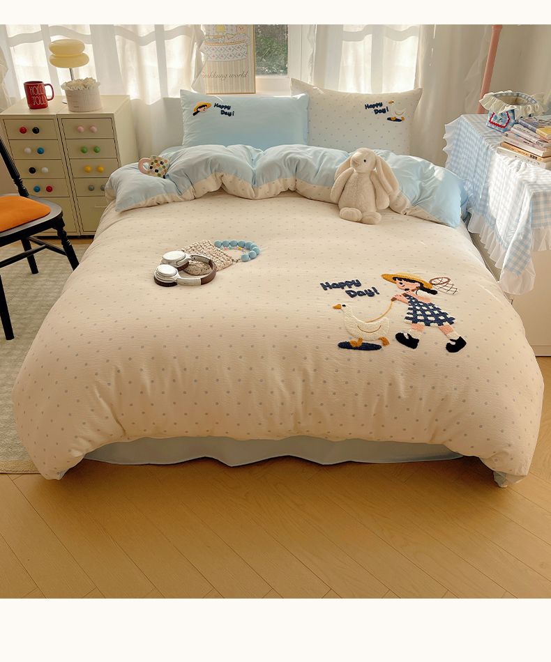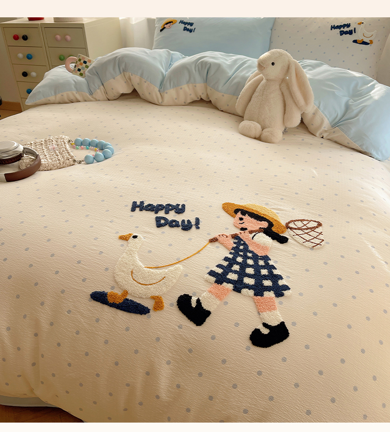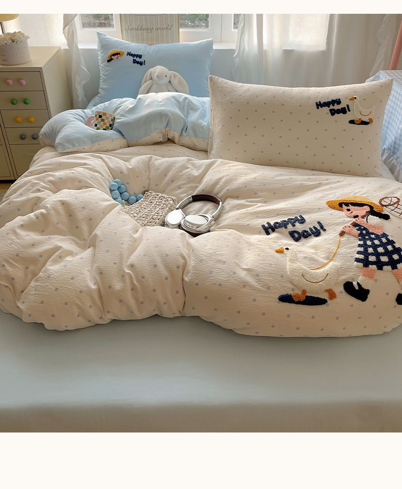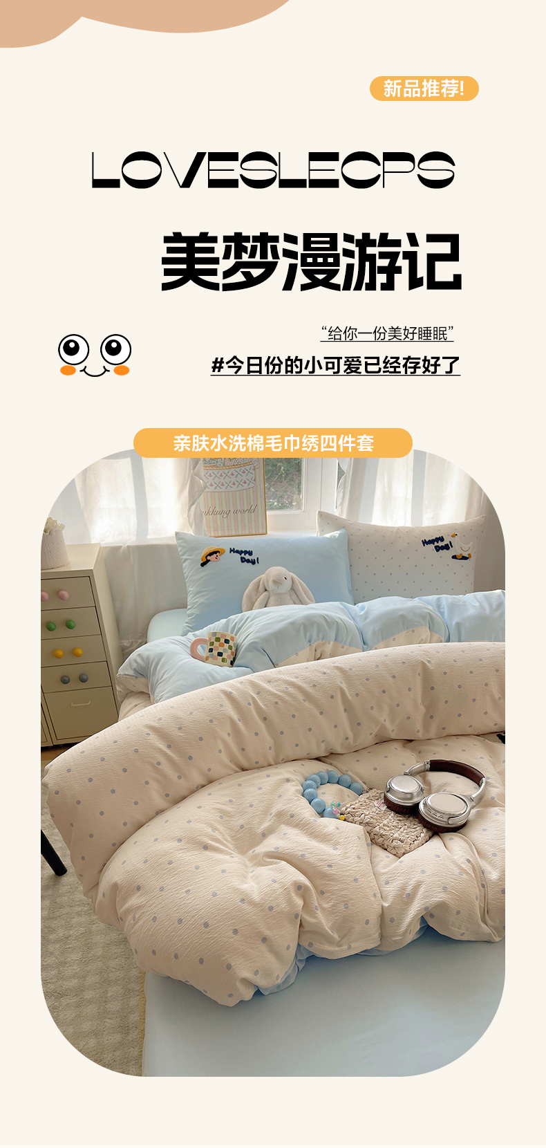 当前位置: 91家纺网 > 商品网购 > 床品套件 > 四件套 > 其它四件套 > 韩都家居 2026春夏新款亲肤舒适毛巾绣四件套(包含买家秀原图) 小女孩