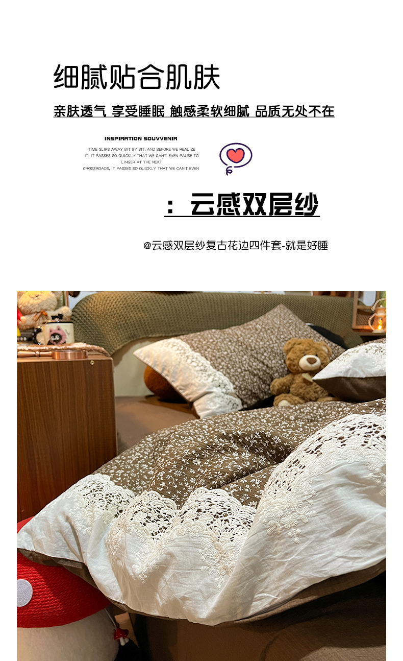 当前位置: 91家纺网 > 商品网购 > 床品套件 > 四件套 > 化纤普通四件套 > 水墨江南 2026新款甜美复古花边四件套 复古花边-芷棕