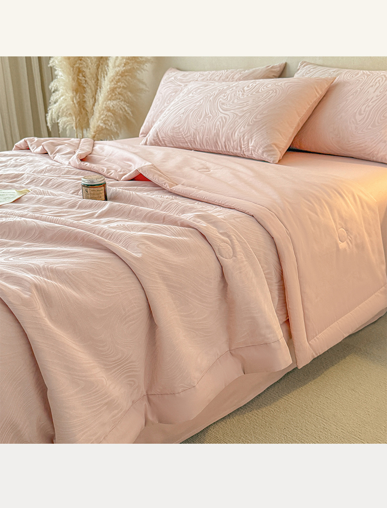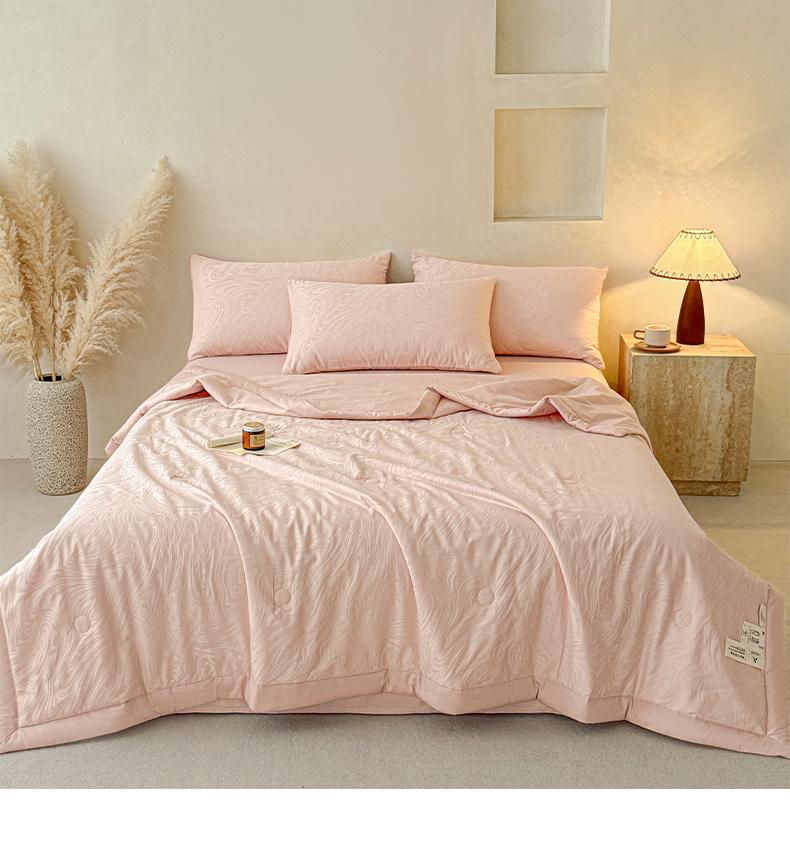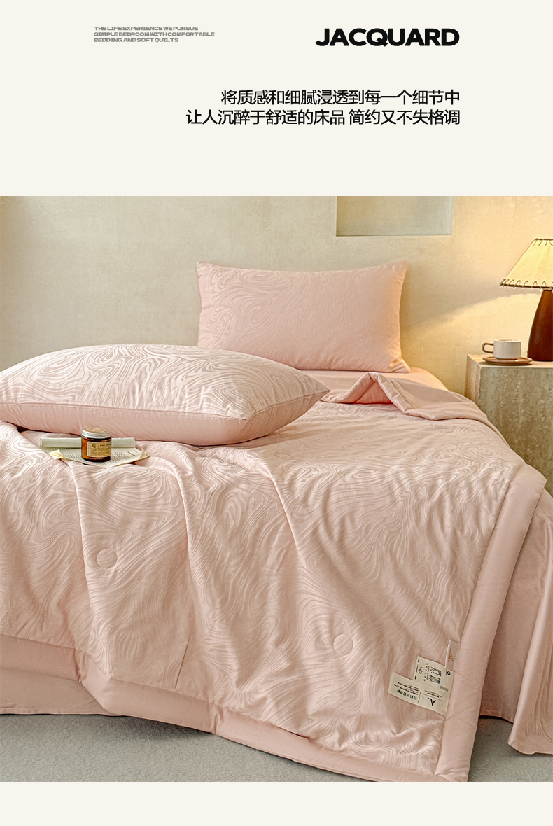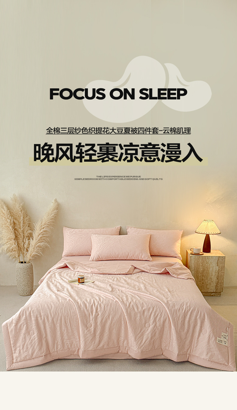 当前位置: 91家纺网 > 商品网购 > 被子 > 夏被 > 一加一 2026新款全棉纯棉三层纱色织提花大豆夏被四件套-云棉肌理 凯迪娜(粉金)