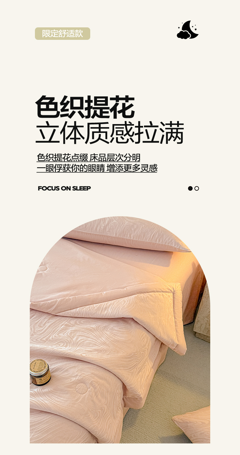 • 91家纺网 家纺一手货源 找家纺 一加一 2026新款全棉纯棉三层纱色织提花大豆夏被四件套-云棉肌理 凯迪娜(粉金)