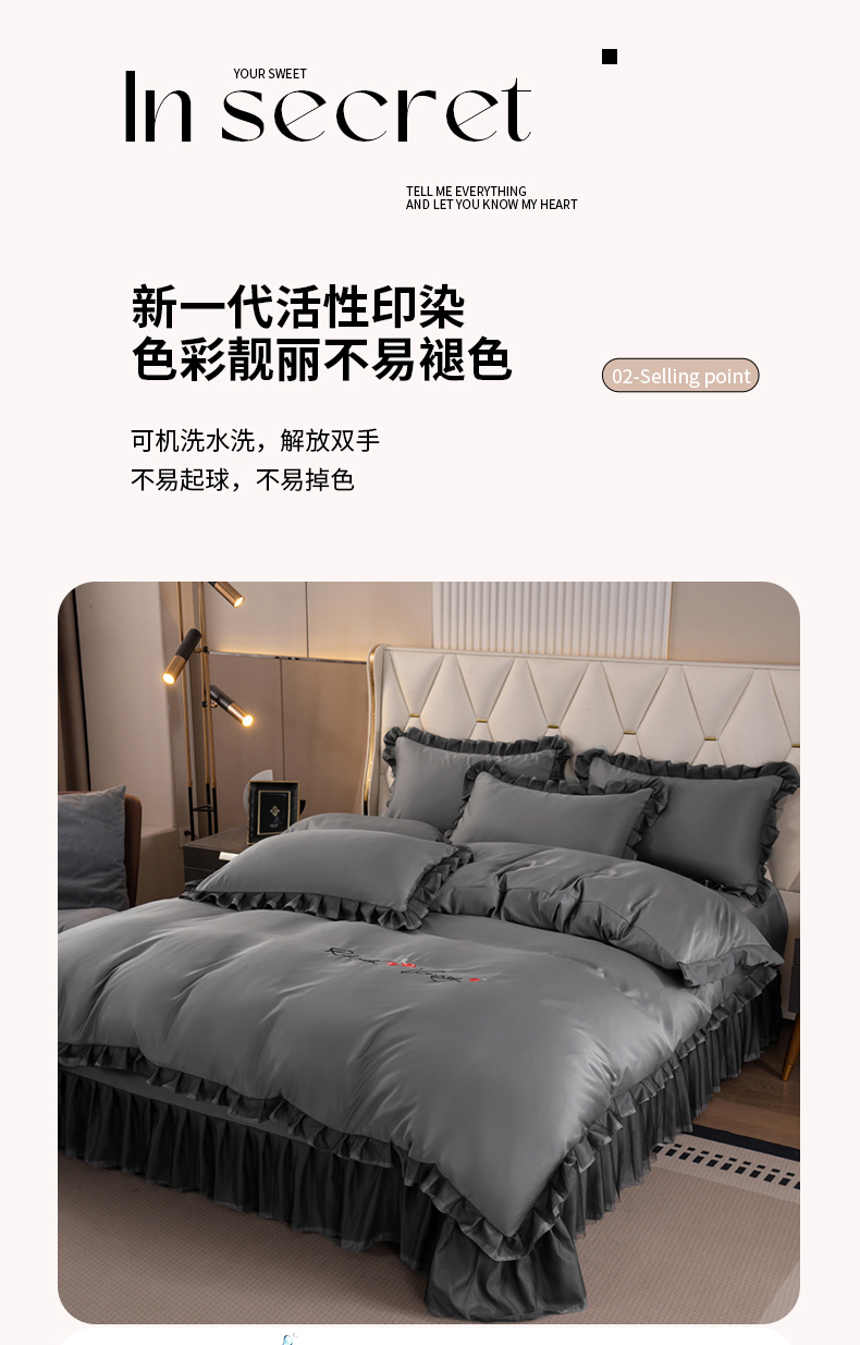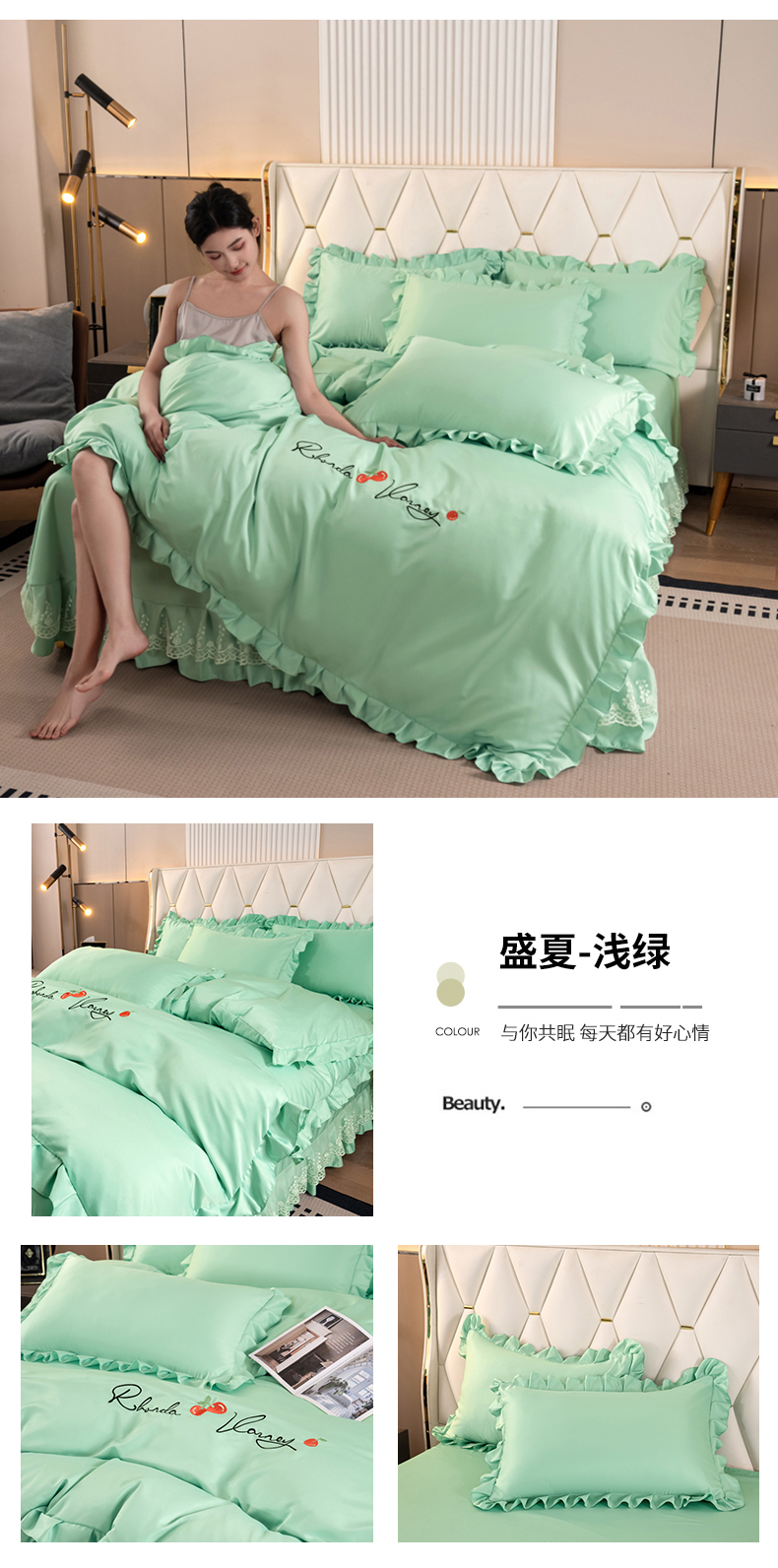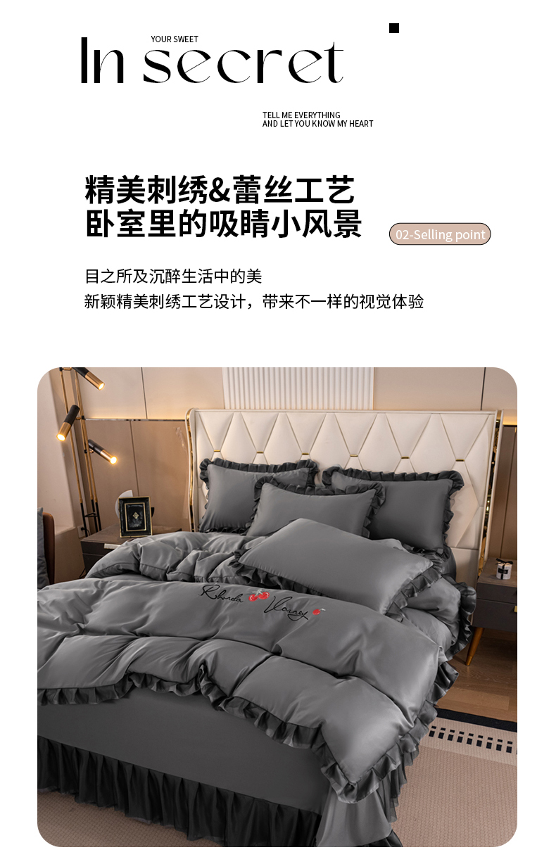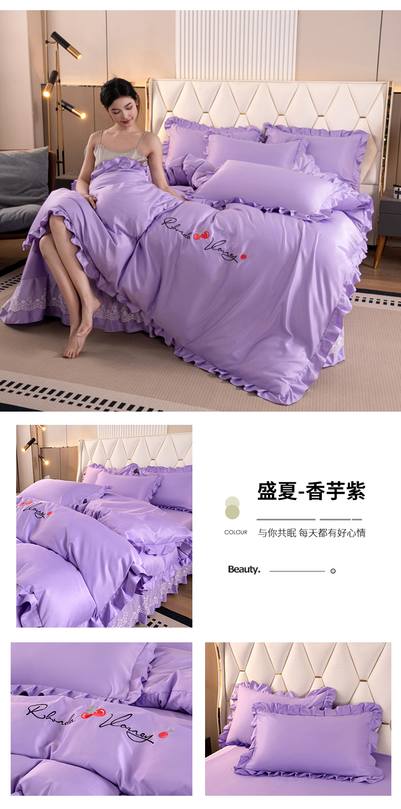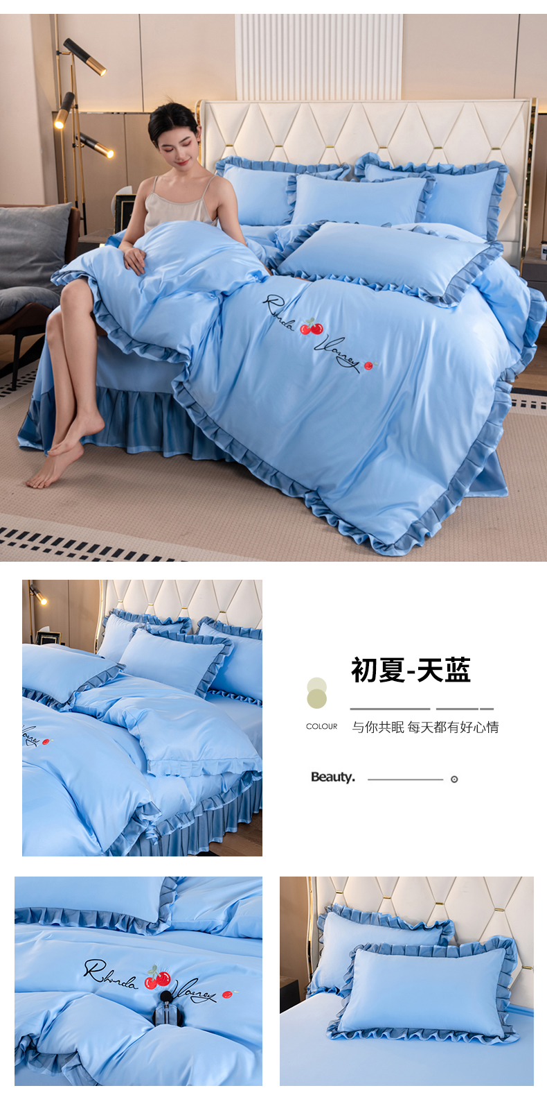 商品名称:(总)畅畅家纺 2026新款水洗天丝纯色刺绣四件套床品套件