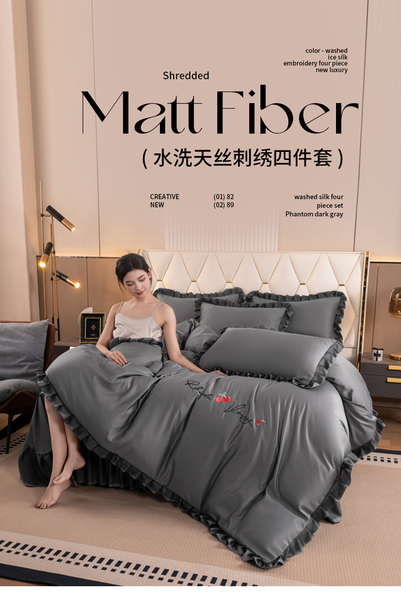 (总)畅畅家纺 2026新款水洗天丝纯色刺绣四件套床品套件
