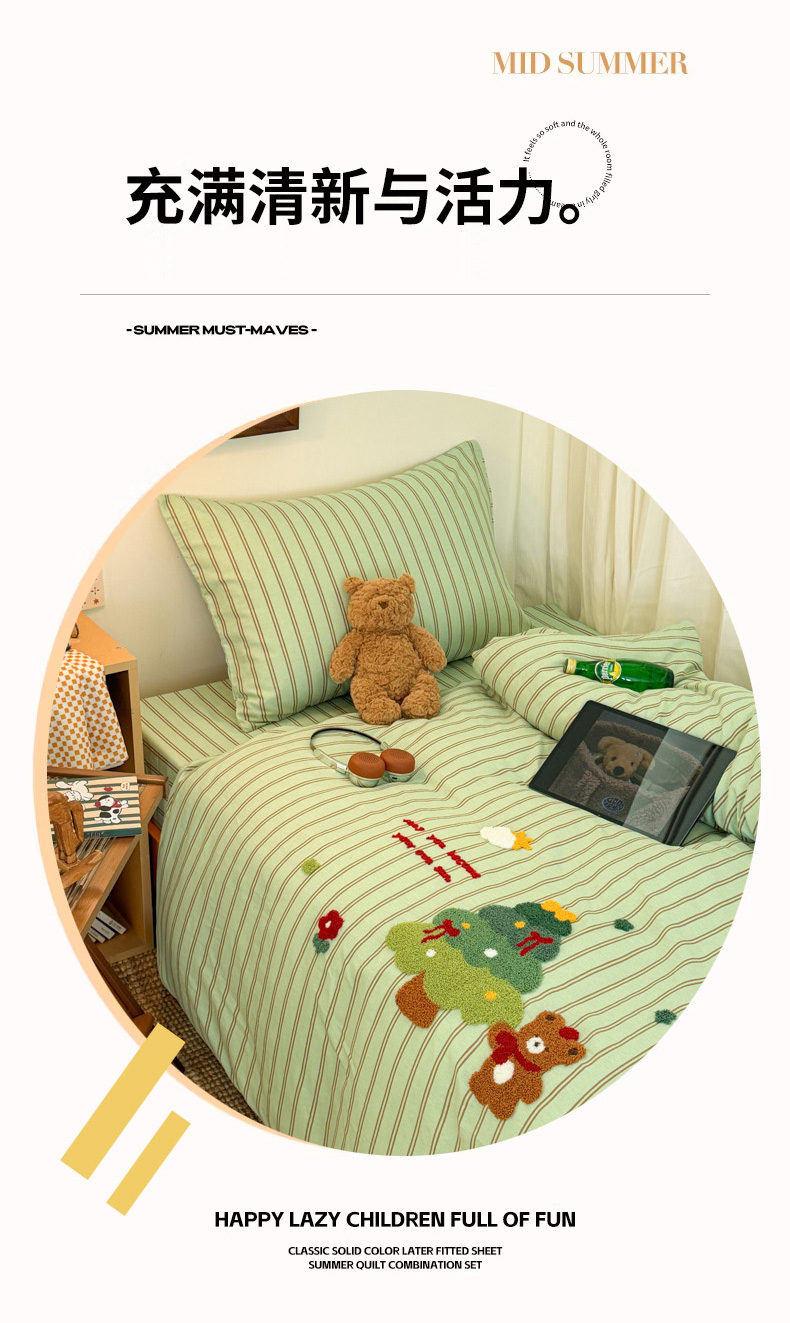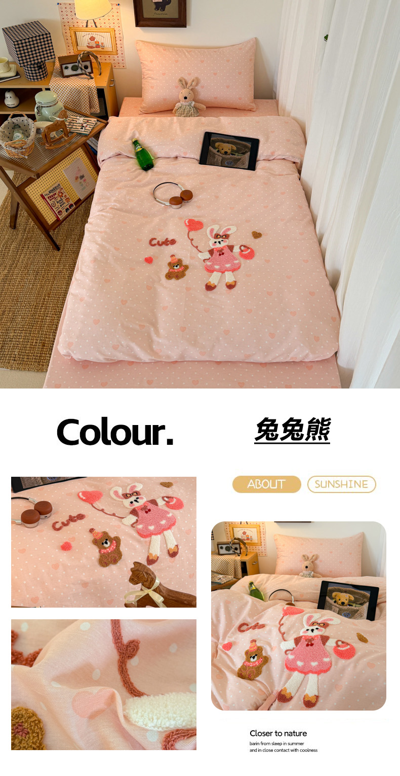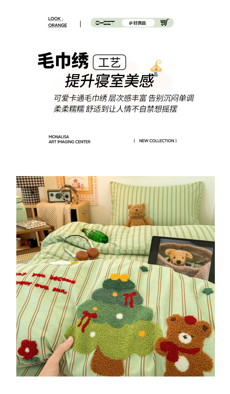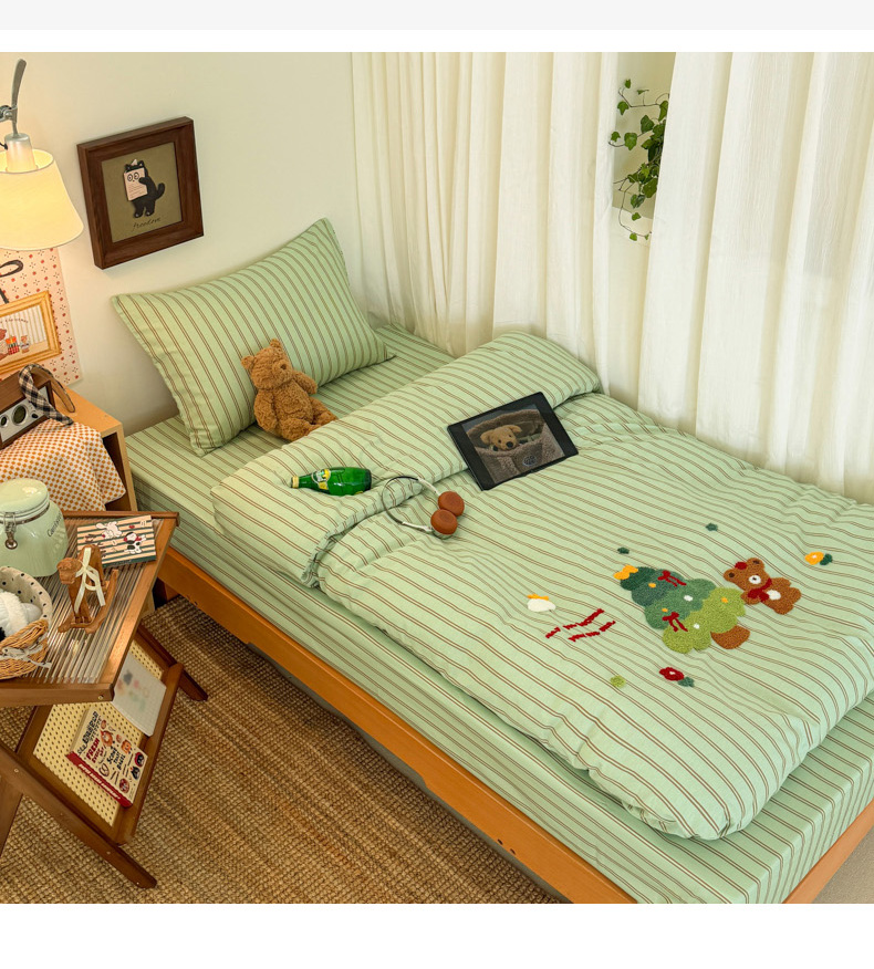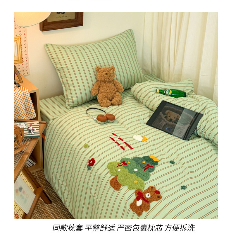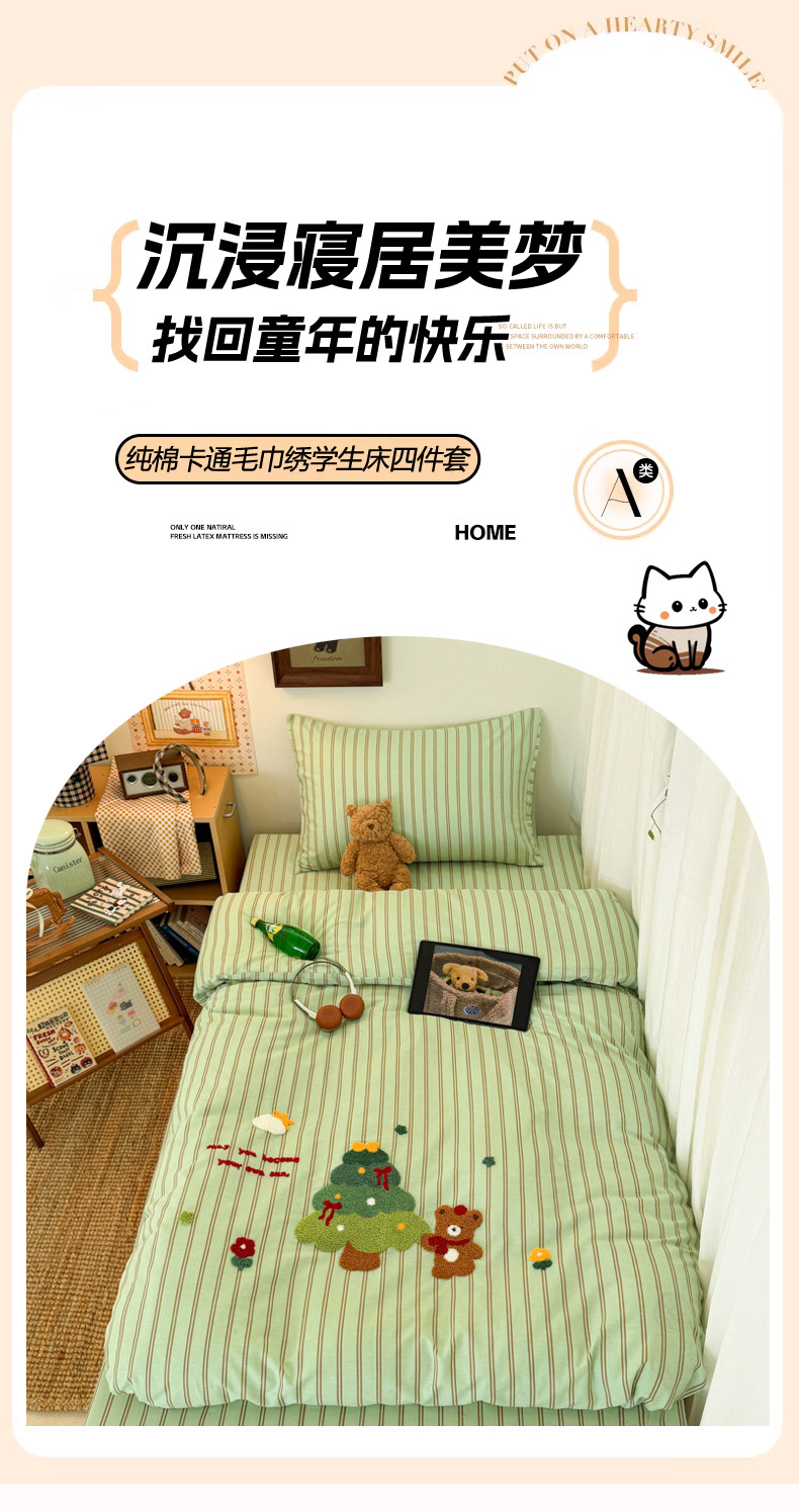 当前位置: 91家纺网 > 商品网购 > 床品套件 > 四件套 > 全棉普通四件套 > 倾慕家纺 2026新款学生纯棉毛巾绣四件套 森林小熊