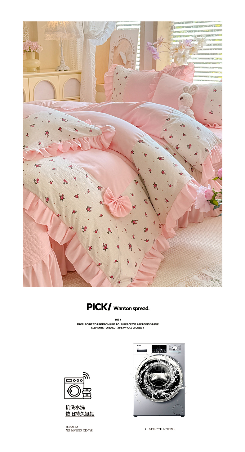 (总)唐人居 2026春夏新款皱皱水洗棉花边床盖四件套,安妮,半亩花田,宝格丽曼,彩色波点,初见,繁花,芬德拉,花影,卡地,玫瑰园,柔心花影,幸运小马,音乐派对,音乐企鹅