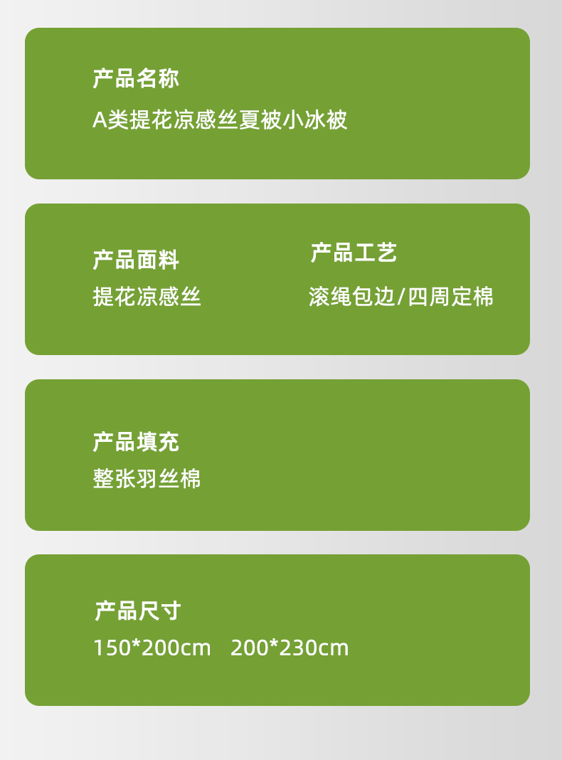 商品名称:芯恋家居 2026新款A类提花高端素色凉感丝小冰被夏被夏凉被空调被 优雅绿