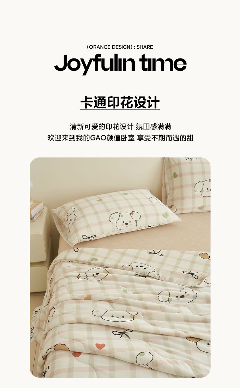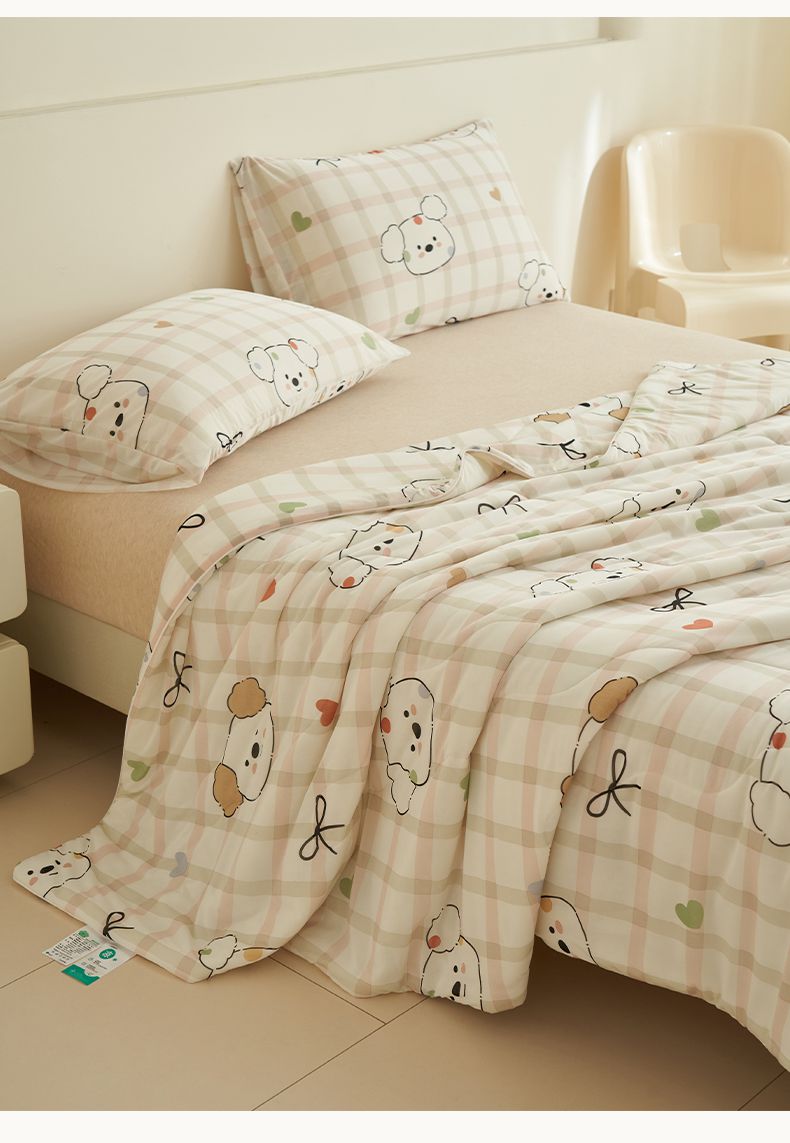商品名称:畅销被业 2026新款卡通印花跨境外贸有氨凉感丝冰淇淋夏凉被空调被 格子狗