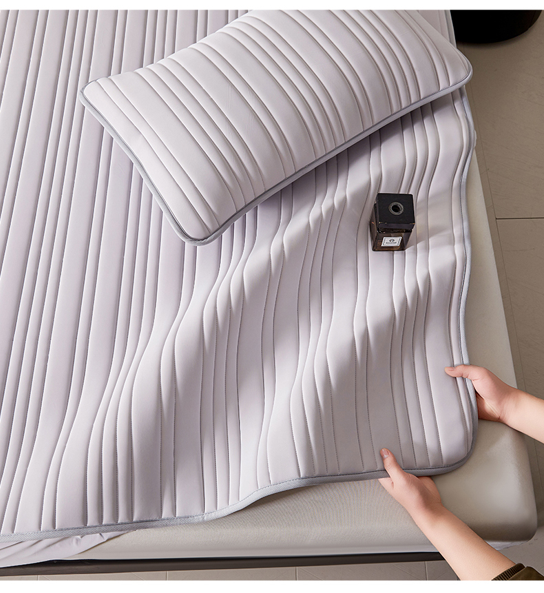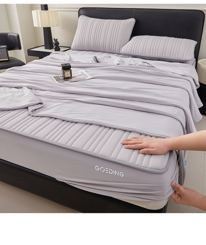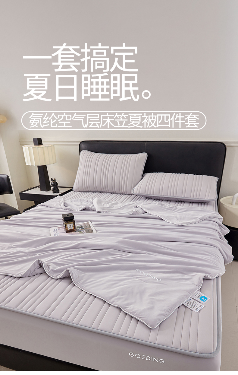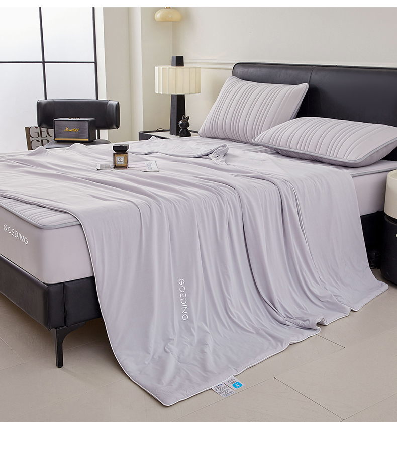 • 91家纺网 家纺一手货源 找家纺 雯豆家纺 2026春夏新款氨纶凉感丝床笠夏被四件套0.28凉感值空调被子被芯 知夏-浅灰
