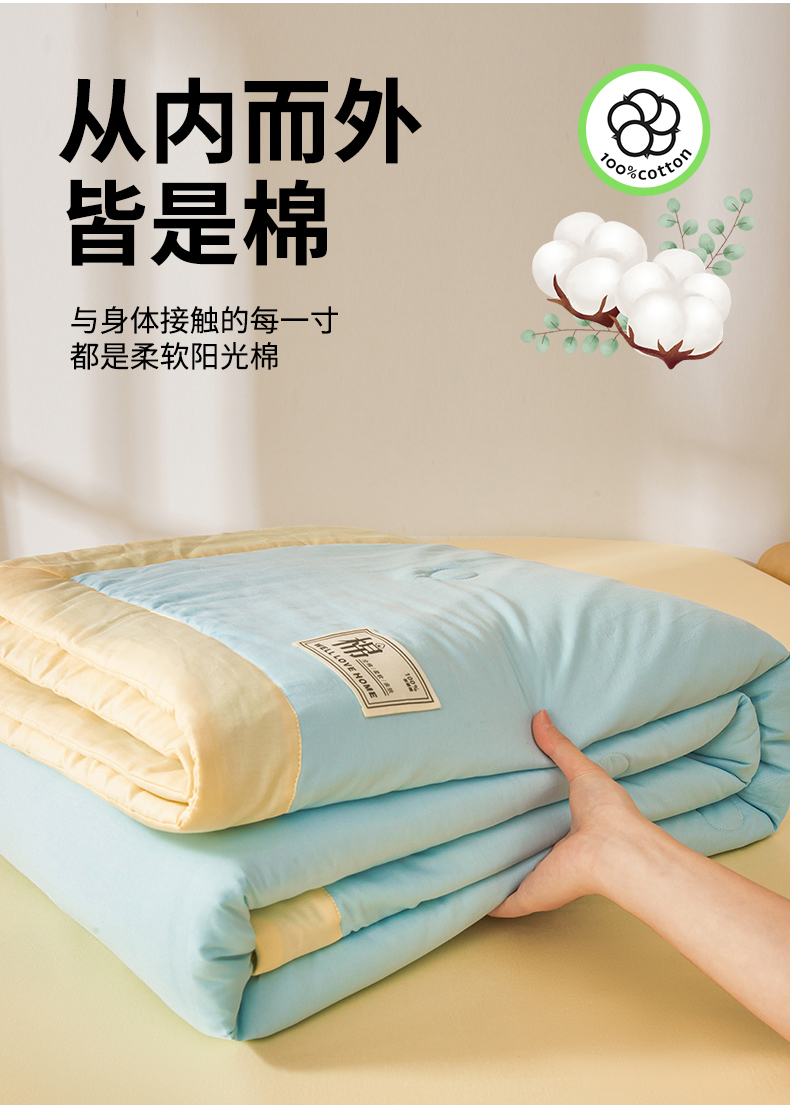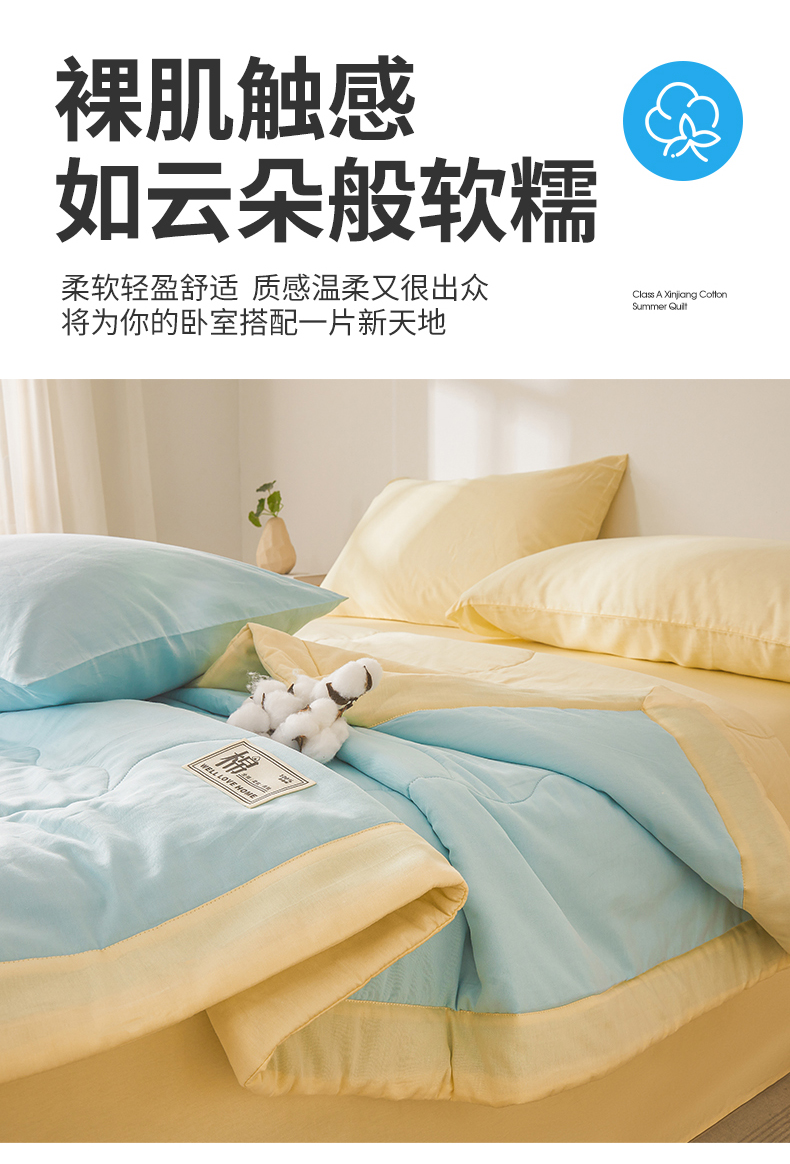 当前位置: 91家纺网 > 商品网购 > 被子 > 夏被 > 晓时候 2026新款纯色100%里外全棉新疆棉花被纯棉夏凉被空调被夏被四件套被子被芯 里外全棉-天空蓝拼黄
