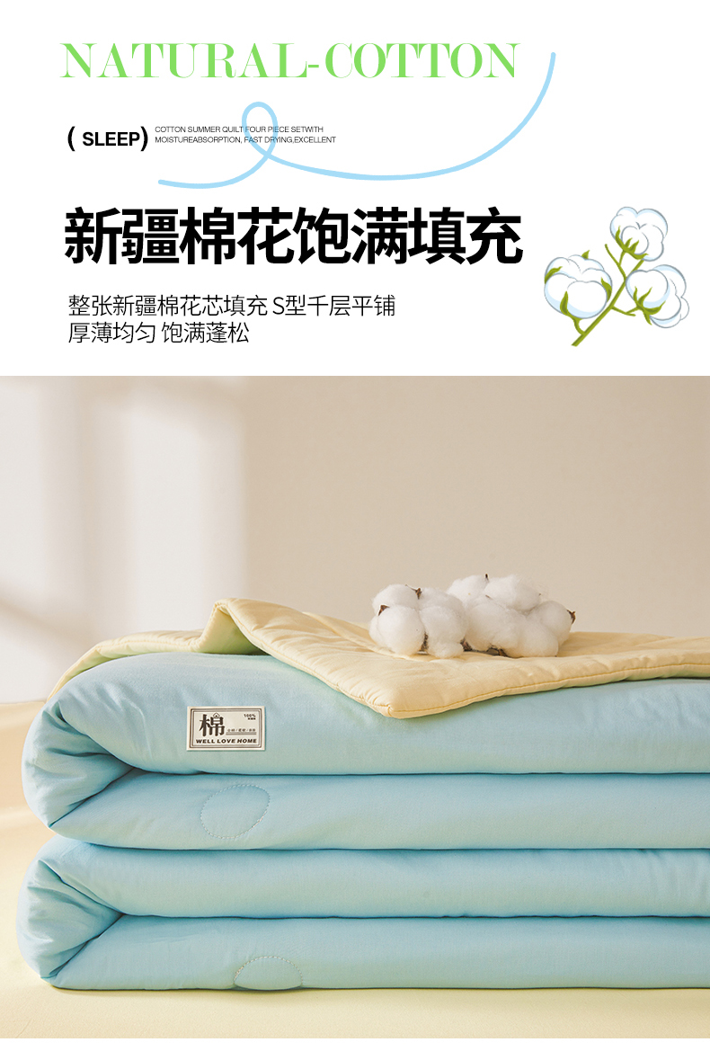 (总)晓时候 2026A类云感双层纱夏被四件套新疆棉花被无染夏凉被空调被,云朵白+青竹绿,冰川灰,青春蓝,青春蓝+柠檬黄,青竹绿,樱花粉,樱花粉+柠檬黄,云朵白,云朵白+冰川灰,云朵白+柠檬黄,云朵白+青春蓝,云朵白+樱花粉