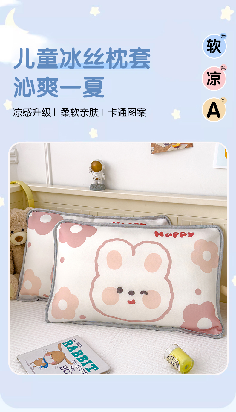 • 91家纺网 家纺一手货源 找家纺 丽美人家纺 2026新款柔软亲肤儿童冰丝枕套 可爱兔