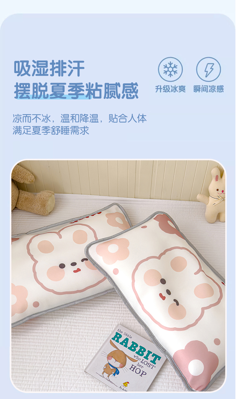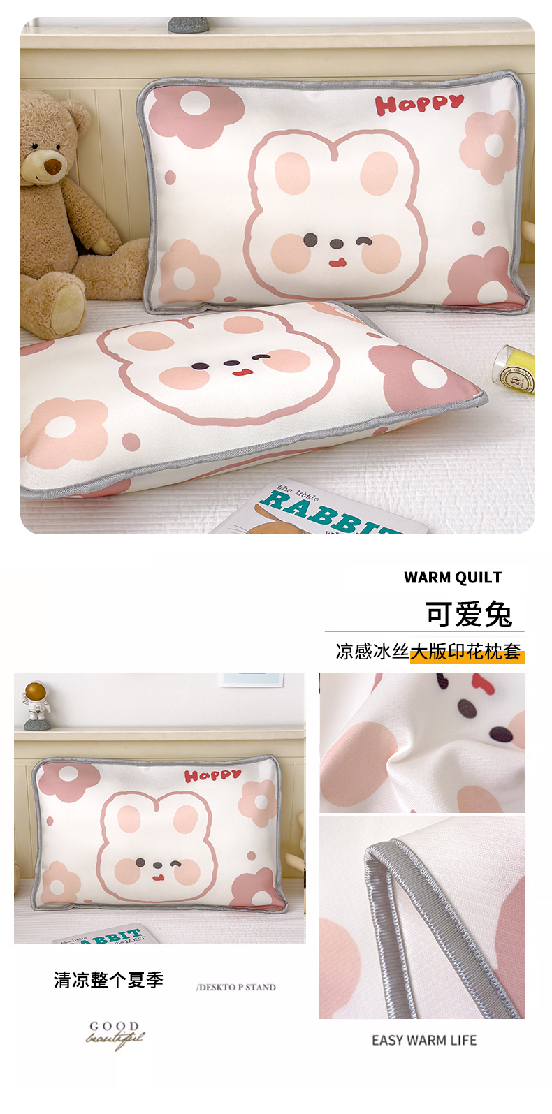 丽美人家纺 2026新款柔软亲肤儿童冰丝枕套 可爱兔