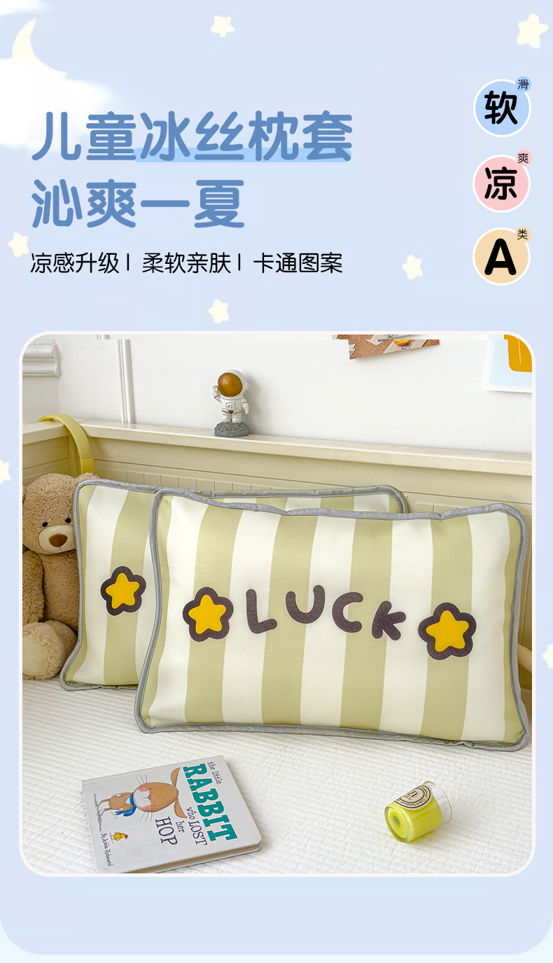 丽美人家纺 2026新款柔软亲肤儿童冰丝枕套 幸运星