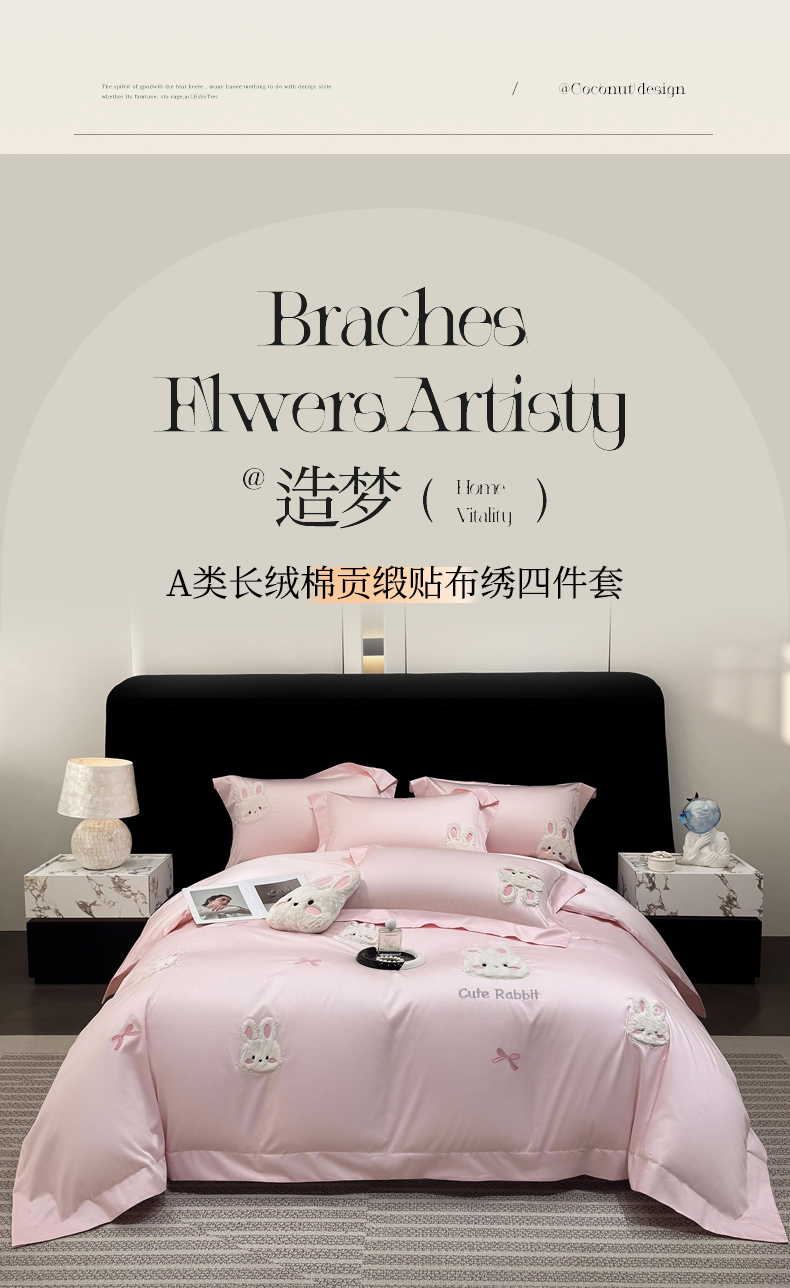 当前位置: 91家纺网 > 商品网购 > 床品套件 > 四件套 > 长绒棉四件套 > (总)星蕴家纺 2026新款卡通长绒棉纯棉绣花四件套-甜心小兔