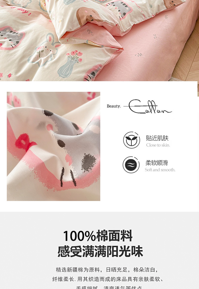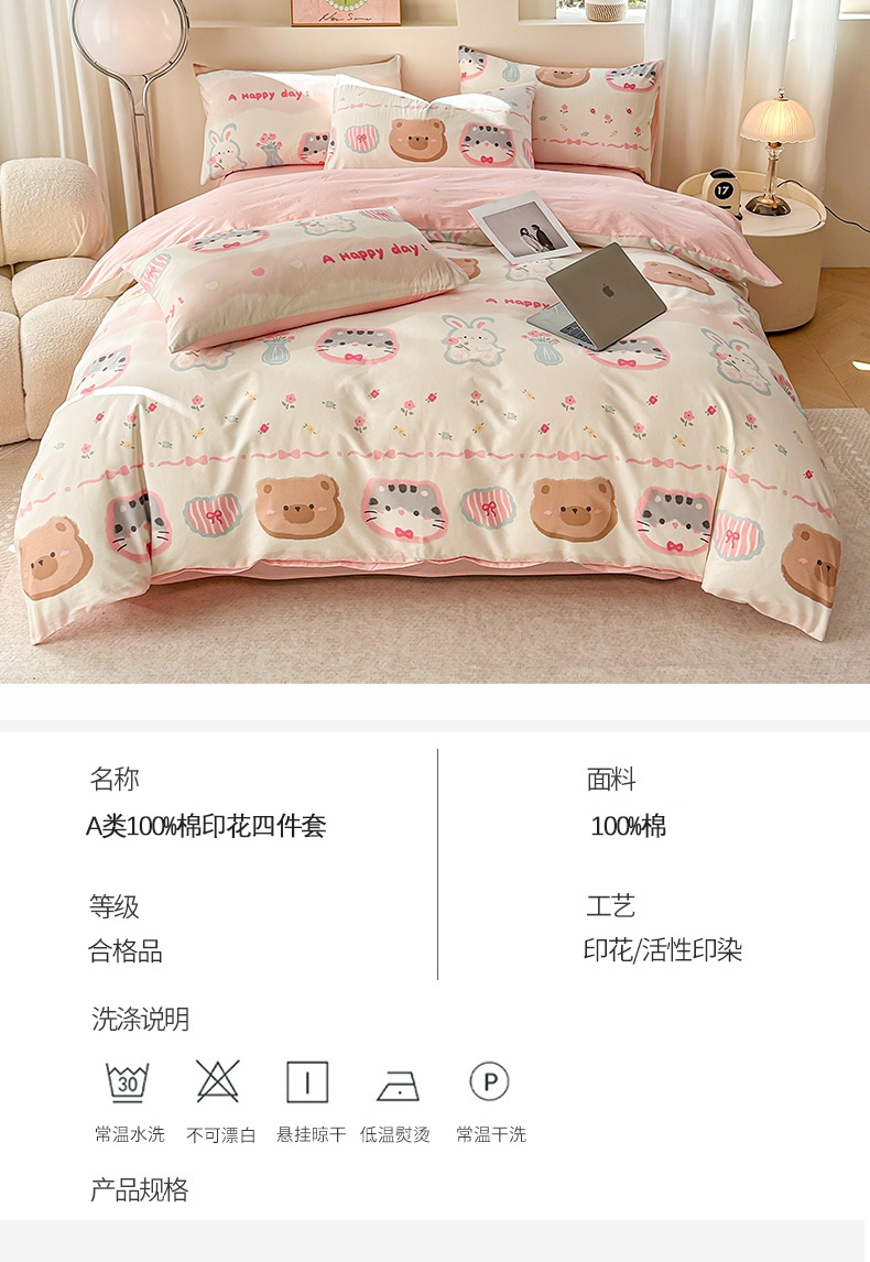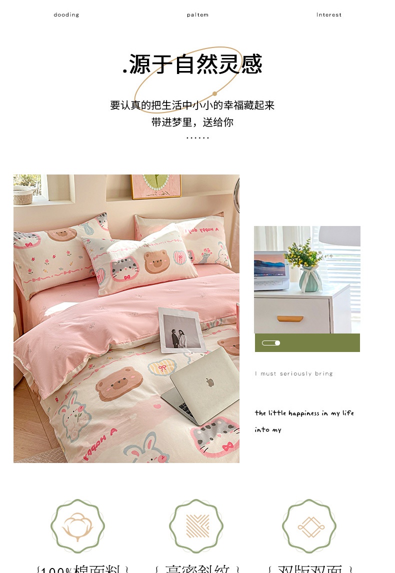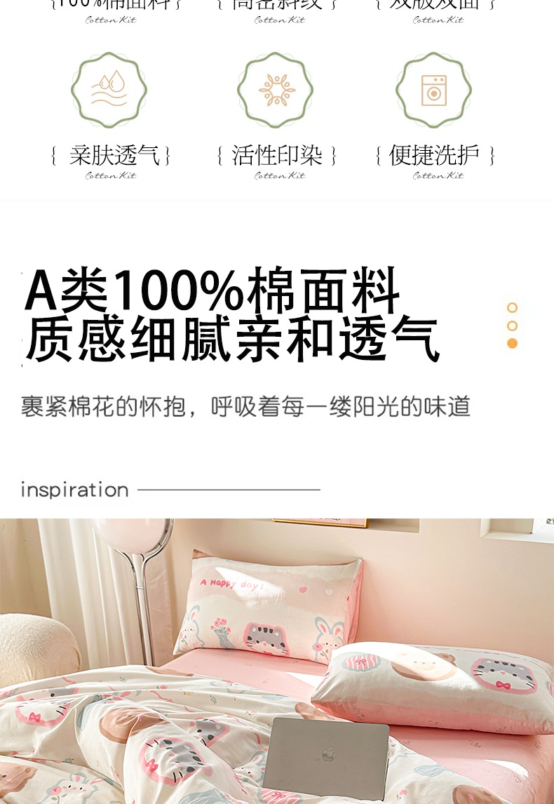 当前位置: 91家纺网 > 商品网购 > 床品套件 > 四件套 > 全棉普通四件套 > 宇彬家纺 2026直播新款13372A类全棉纯棉印花床单床笠款四件套和单被套喷气清新简约 忆伴时光