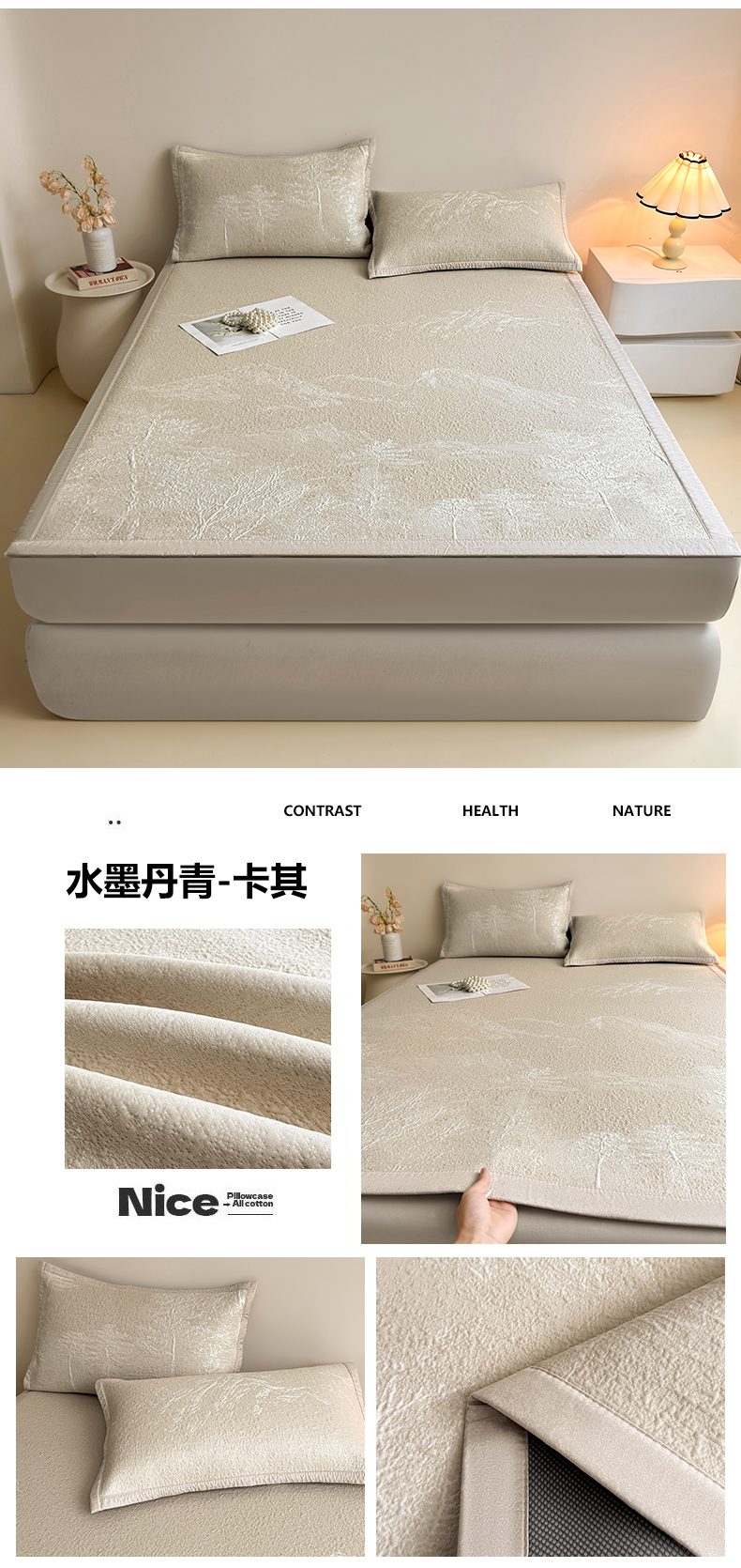 当前位置: 91家纺网 > 商品网购 > 床上用品 > 凉席 > 凉席套件 > 慕木家纺 2026新品高端复合三明治PE乙纶双面提花610克冰豆豆凉席水墨丹青系列(提供买家秀) 床席款水墨丹青-卡其