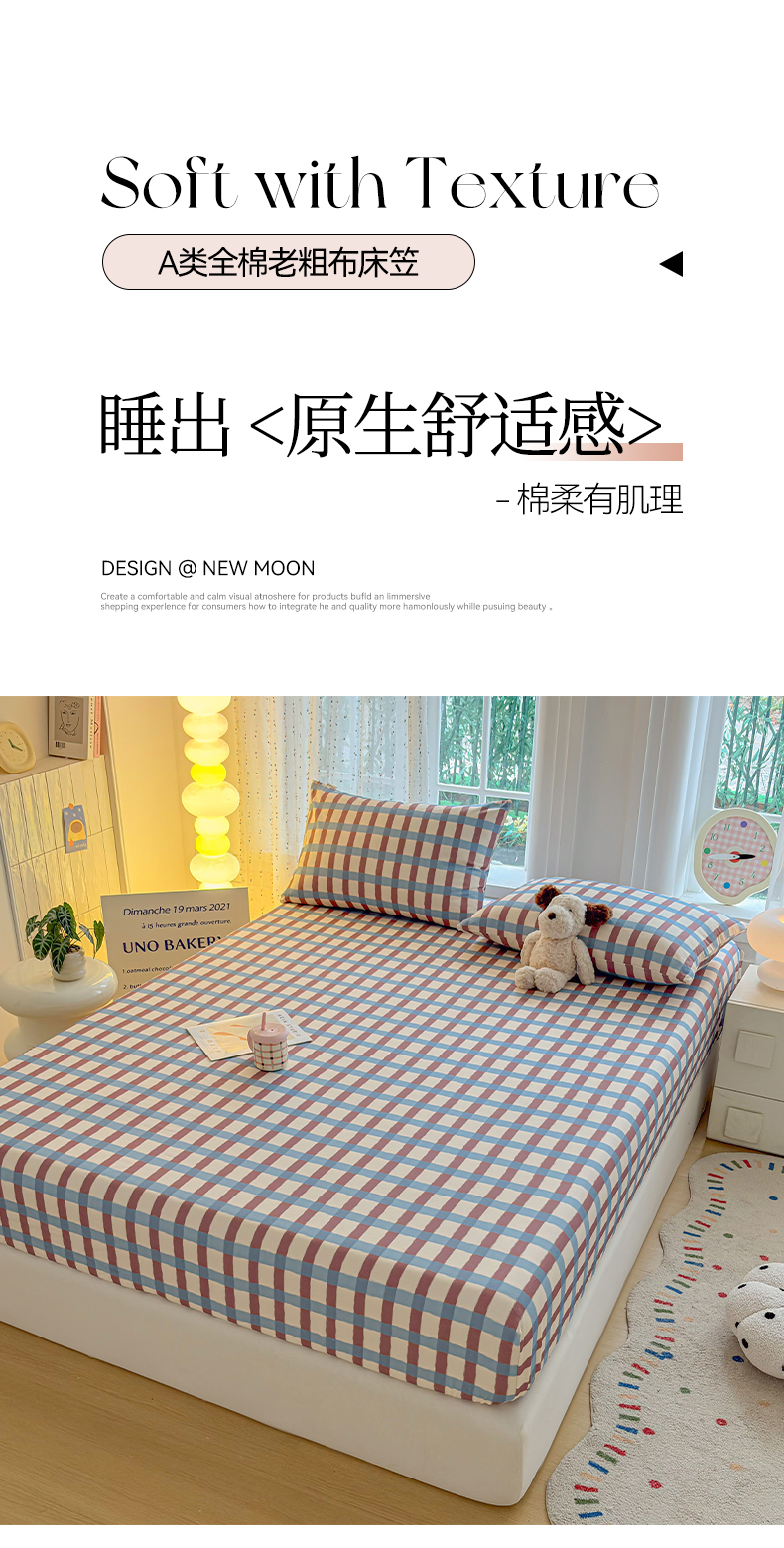 • 91家纺网 家纺一手货源 找家纺 慕梵家居 2026春夏新款全棉纯棉老粗布单床笠 床笠单件 格言-咖