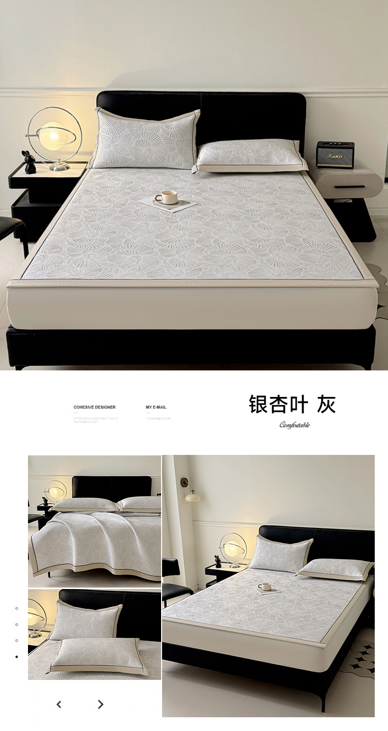 牵梦萦家纺 2026新款立体浮雕压花工艺豆豆凉席三件套-平铺款 银杏叶-灰