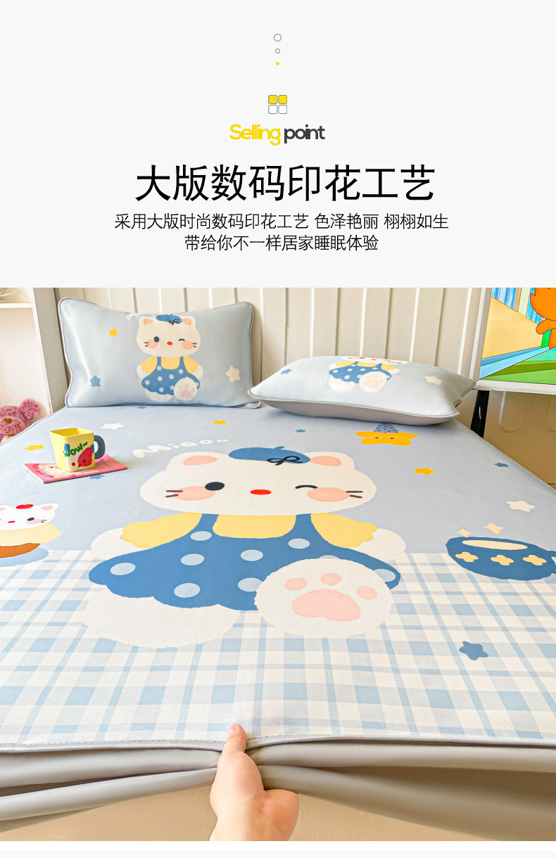 (总)柒月家居 2026新款大版印花碳光冰丝席床席款凉席,围兜狗狗,斑点熊,茶茶蓝猫,蛋糕派对,蛋糕汪汪,动物世界,房子小狗,卷卷白狗,满天星辰,猫猫小窝,猫咪伙伴,萌宝,萌系女孩,蘑菇小兔,晚安熊,汪汪乐园,星星之愿,熊猫宝贝,雪纳瑞狗