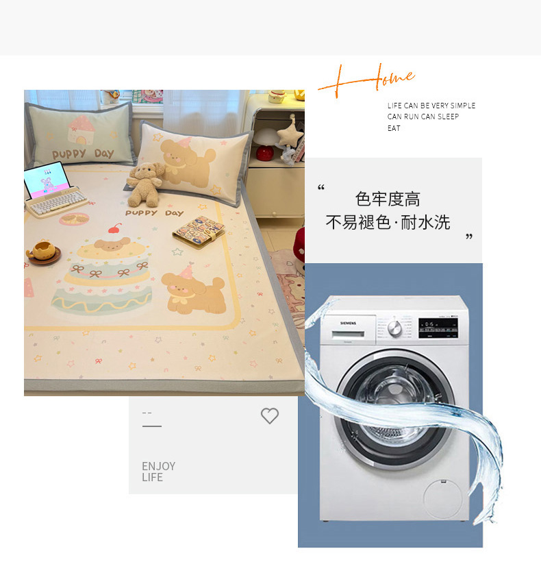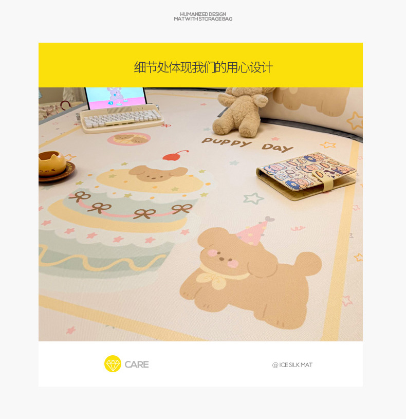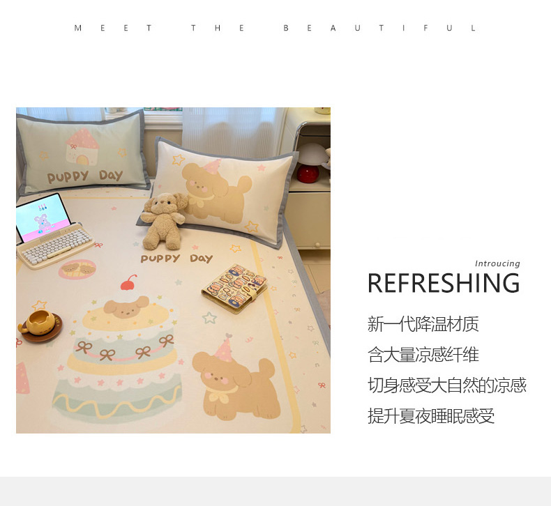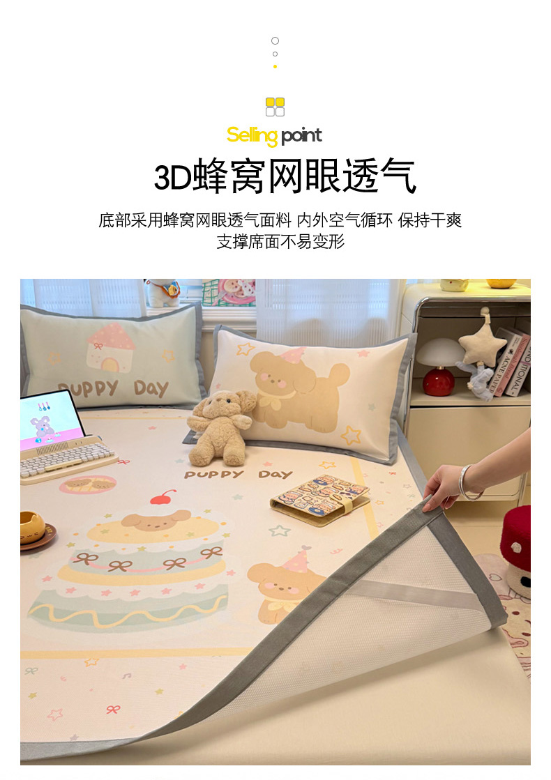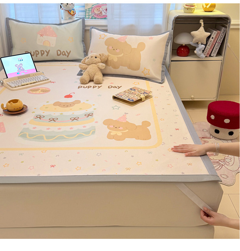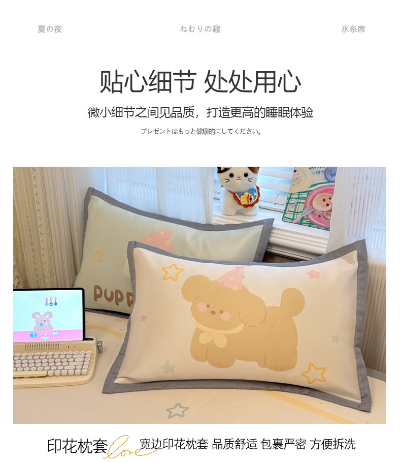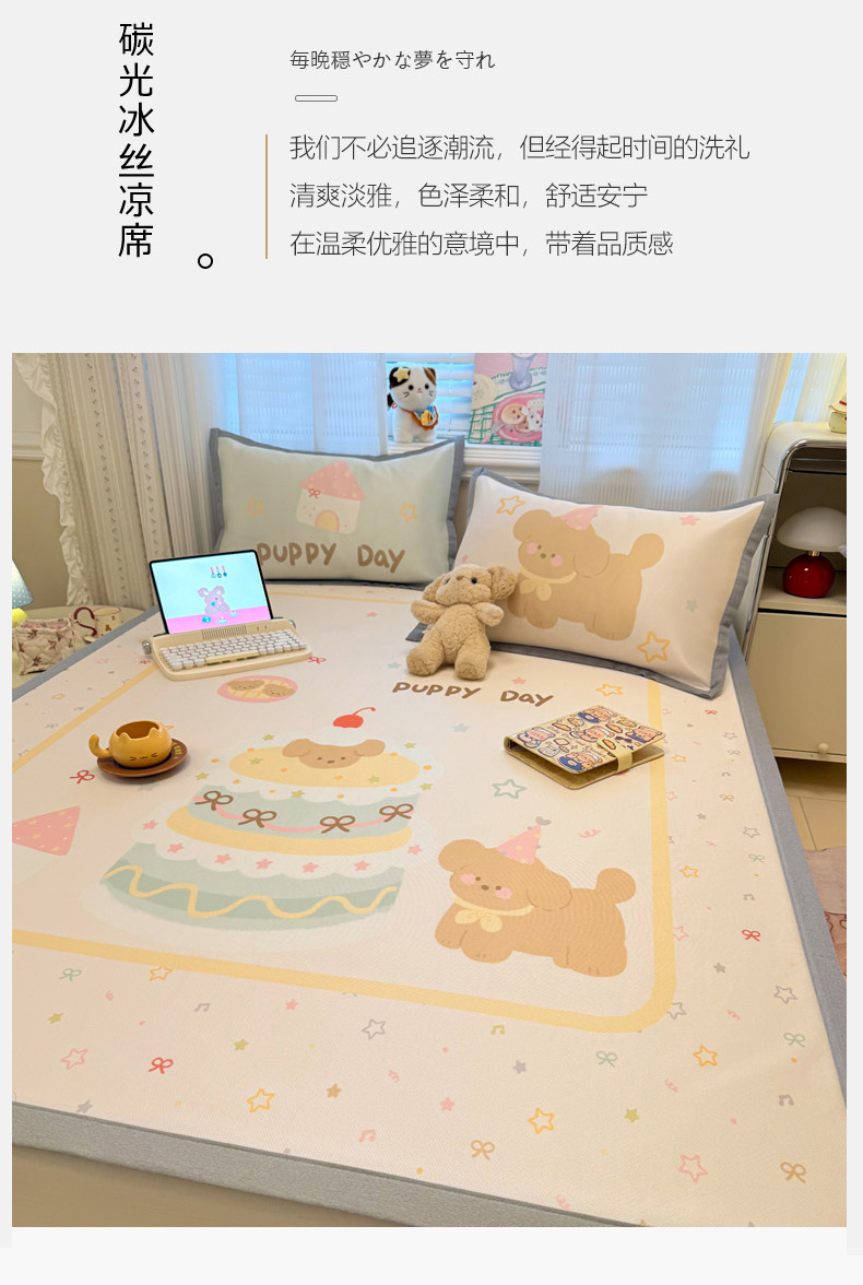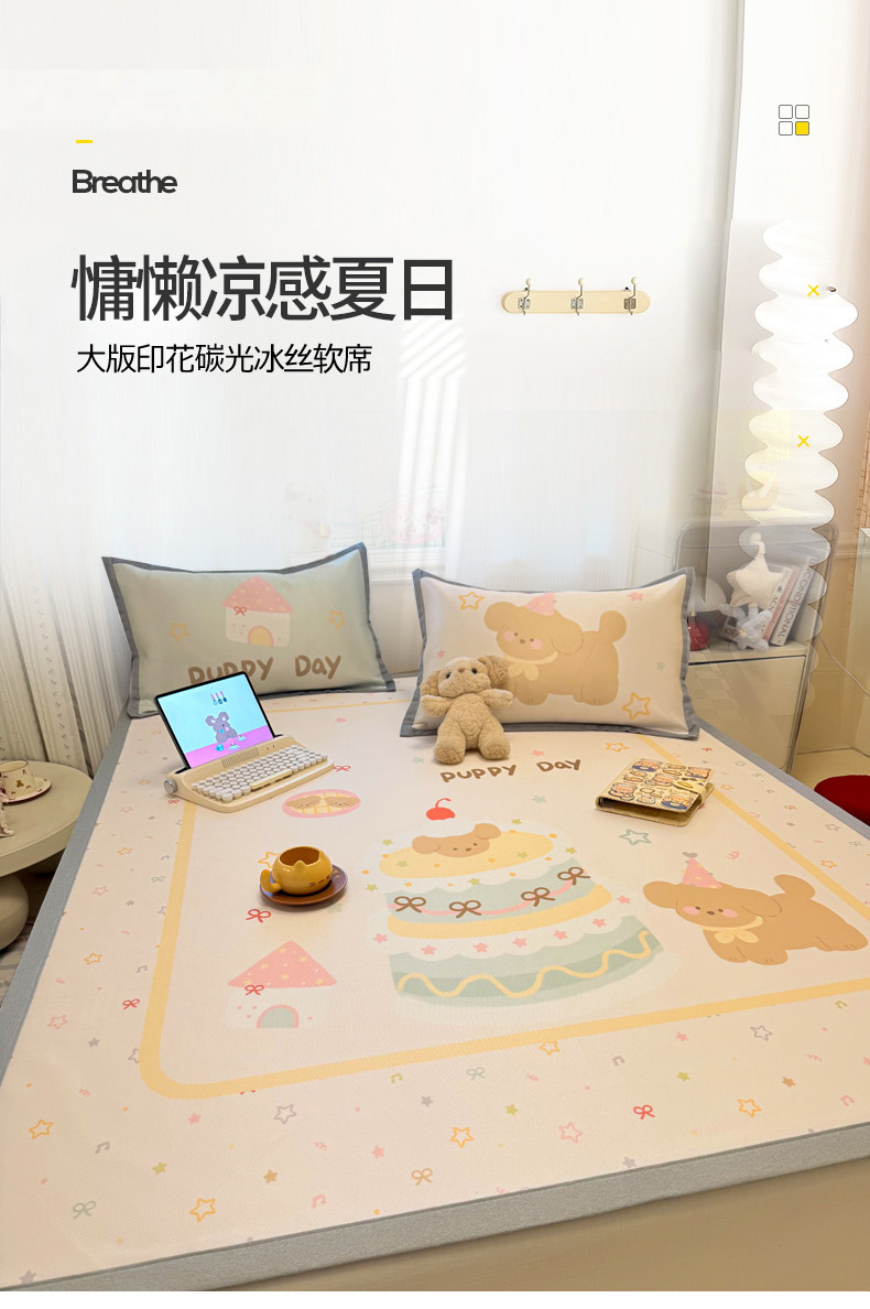 商品名称:柒月家居 2026新款大版印花碳光冰丝席床席款凉席 蛋糕汪汪
