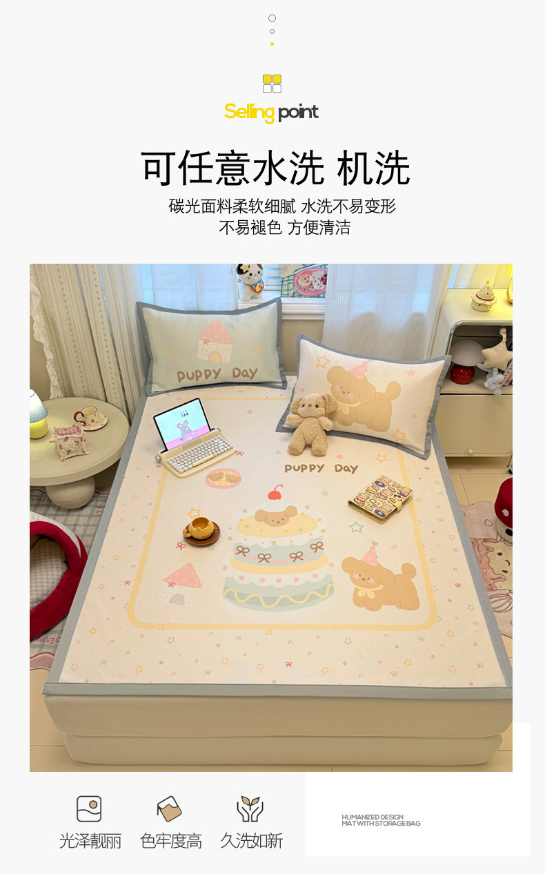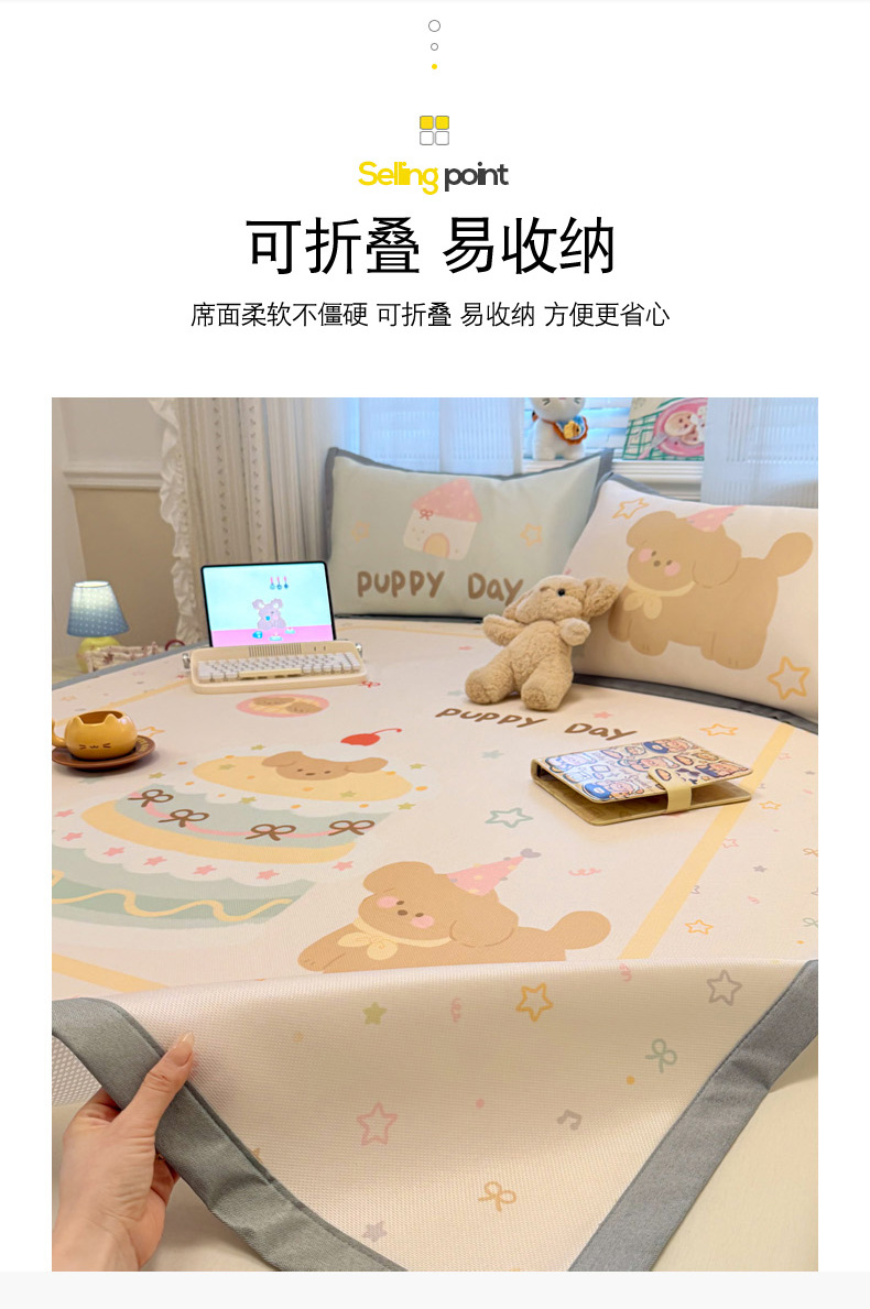 (总)柒月家居 2026新款大版印花碳光冰丝席床席款凉席,围兜狗狗,斑点熊,茶茶蓝猫,蛋糕派对,蛋糕汪汪,动物世界,房子小狗,卷卷白狗,满天星辰,猫猫小窝,猫咪伙伴,萌宝,萌系女孩,蘑菇小兔,晚安熊,汪汪乐园,星星之愿,熊猫宝贝,雪纳瑞狗