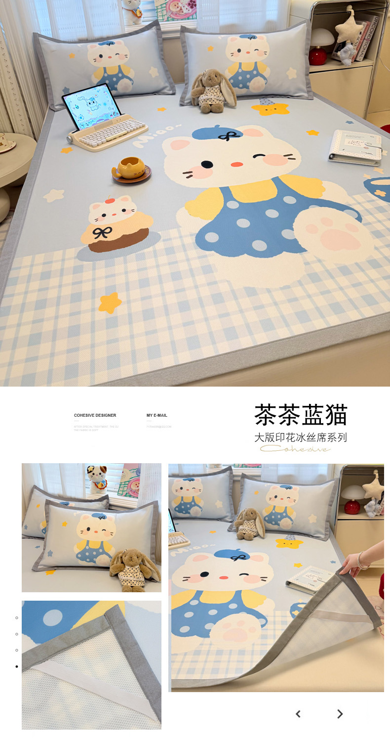 (总)柒月家居 2026新款凉感丝小清新乳胶凉席夏被四件套系列,蓝格甜猫,爱心小熊,豹纹精灵,粉格凯蒂,格调,花季,蓝块汪仔,奶盖猫咪,碎花派对,桃桃奶猫,星梦小熊,星星月亮,字母小熊