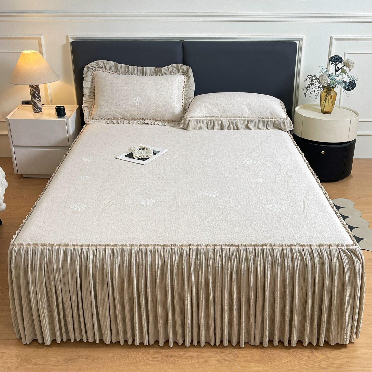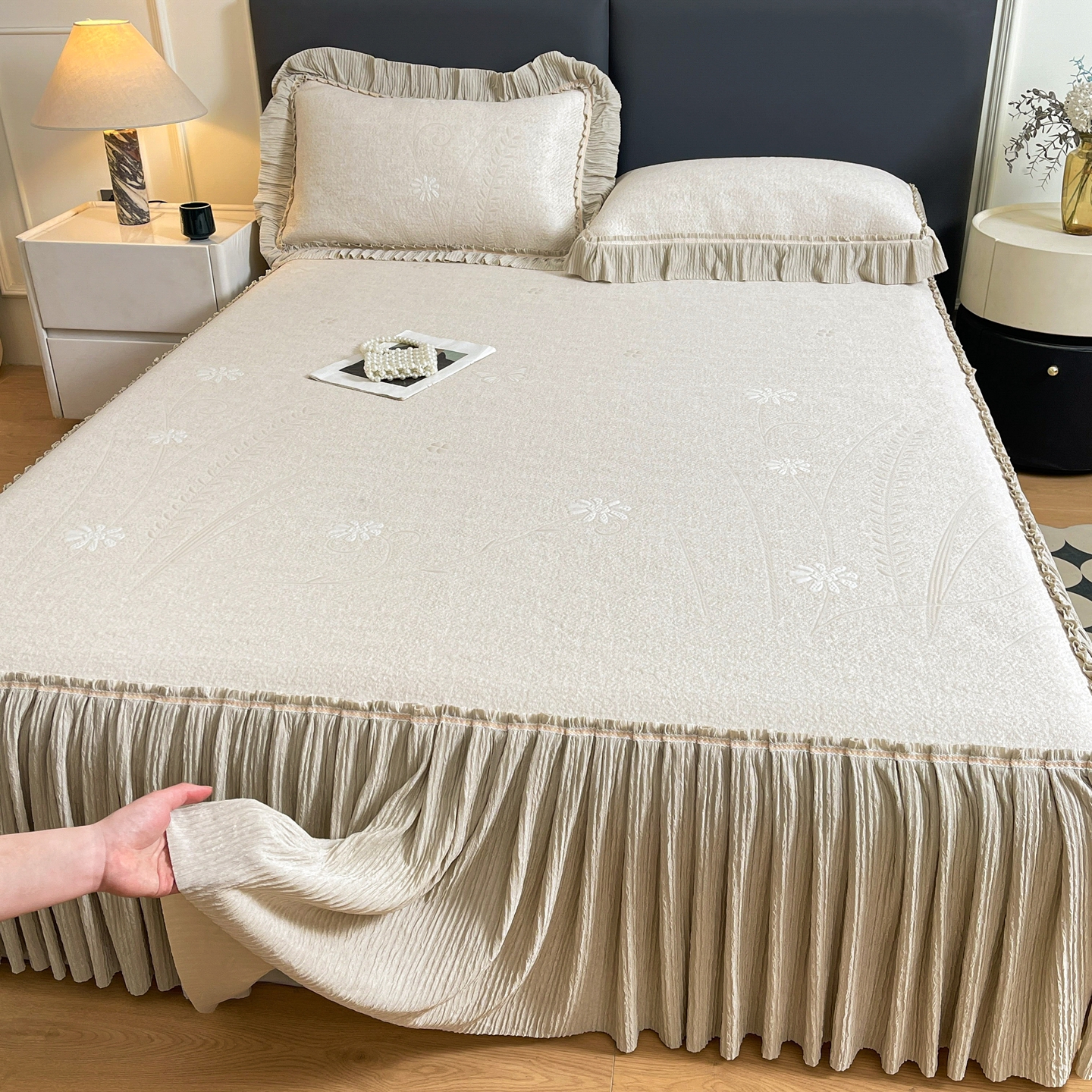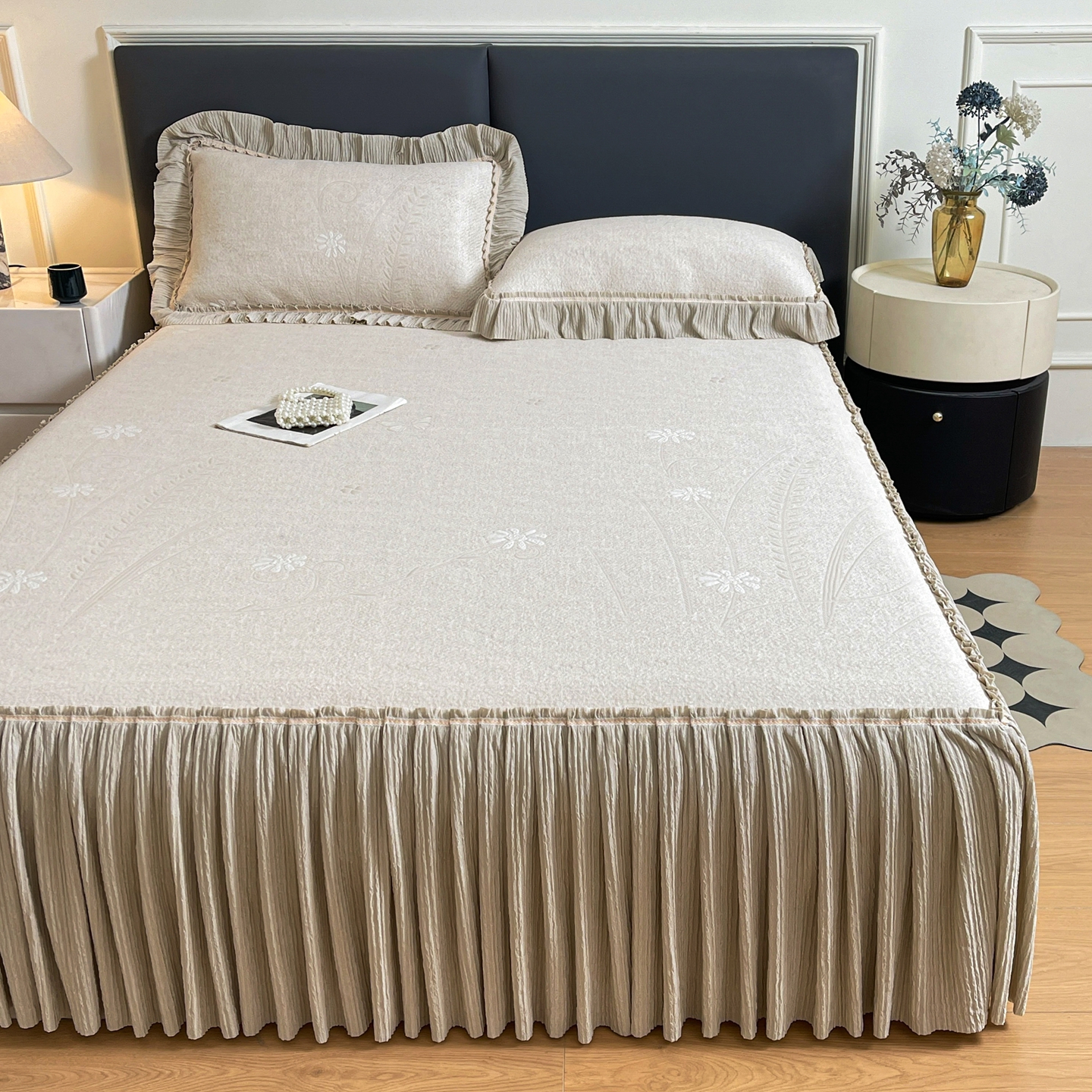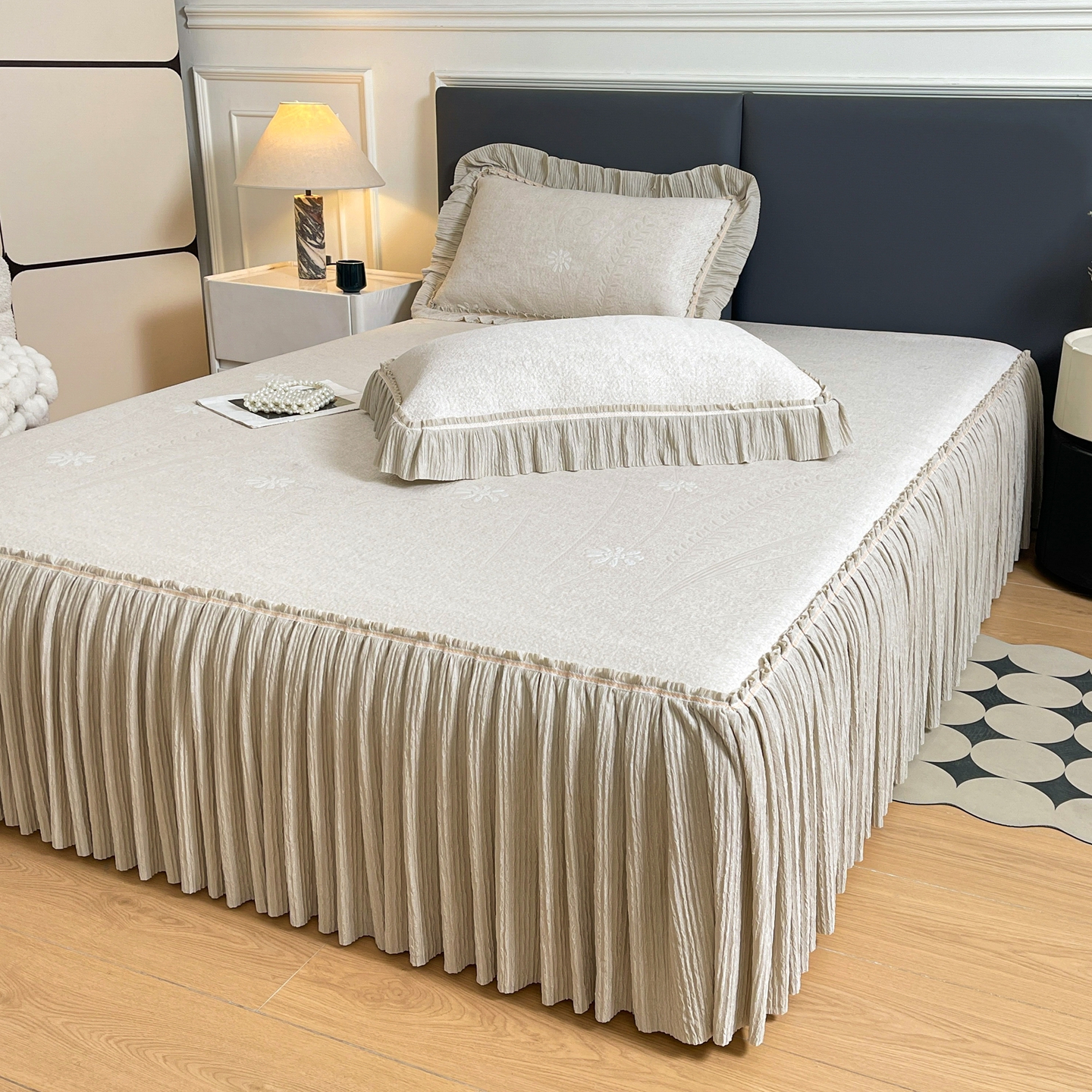 当前位置: 91家纺网 > 商品网购 > 床上用品 > 凉席 > 凉席套件 > 牵梦萦家纺 2026新款立体浮雕压花工艺凉感豆豆凉席-床裙款 彩蝶-香槟