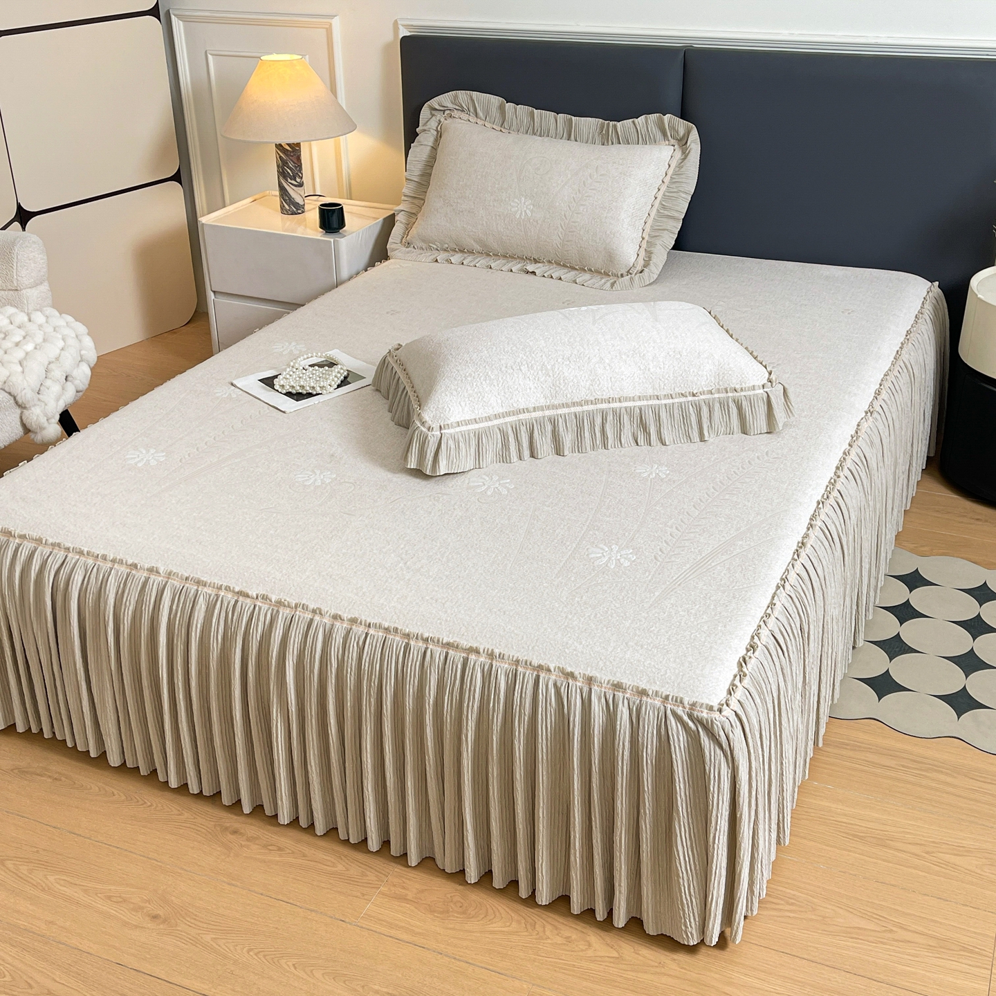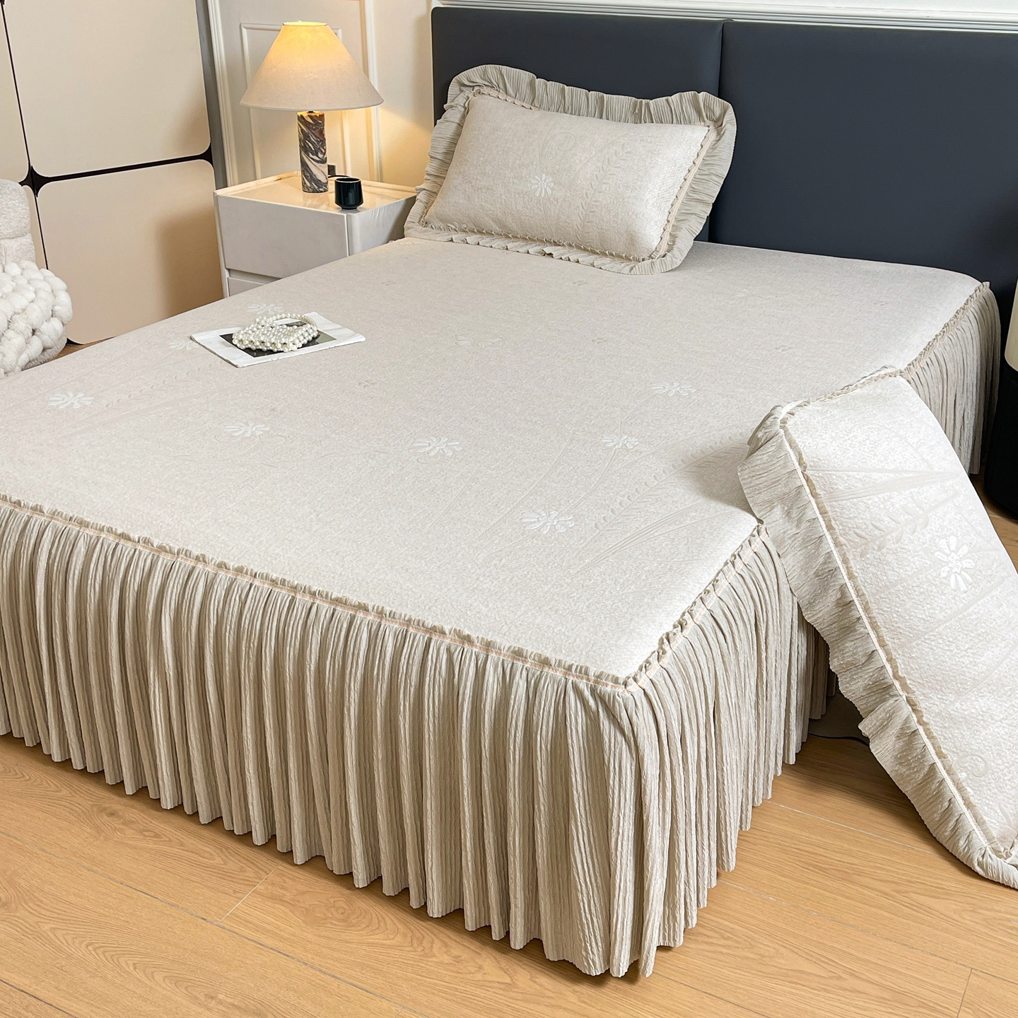 (总)牵梦萦家纺 2026新款立体浮雕压花工艺凉感豆豆凉席-床裙款,彩蝶-粉色,彩蝶-灰色,彩蝶-蓝色,彩蝶-绿色,彩蝶-香槟,荷塘月色-粉色,荷塘月色-灰色,荷塘月色-蓝色,荷塘月色-绿色,荷塘月色-香槟,银杏叶-粉色,银杏叶-灰色,银杏叶-蓝色,银杏叶-绿色,银杏叶-香槟,银杏叶-紫色