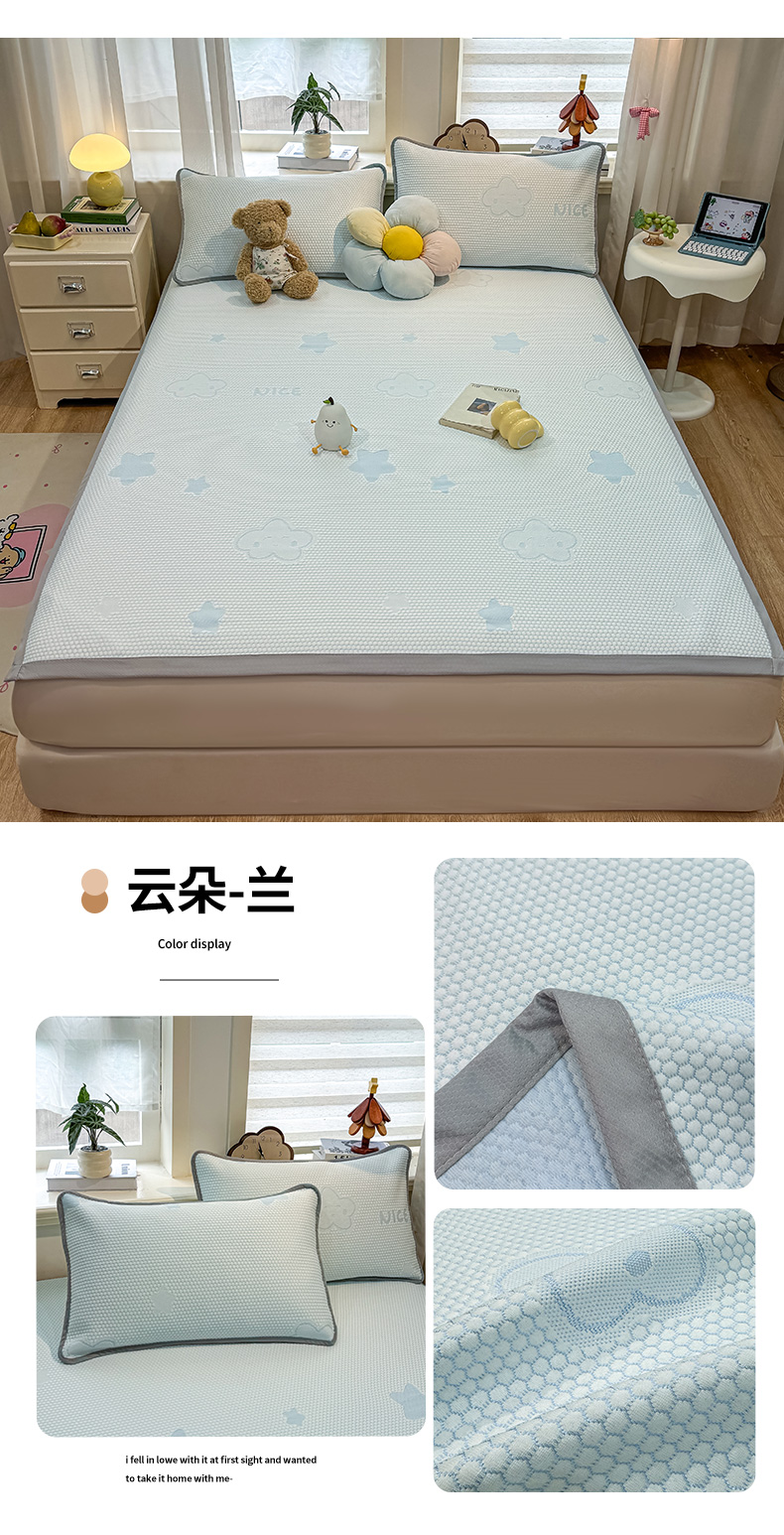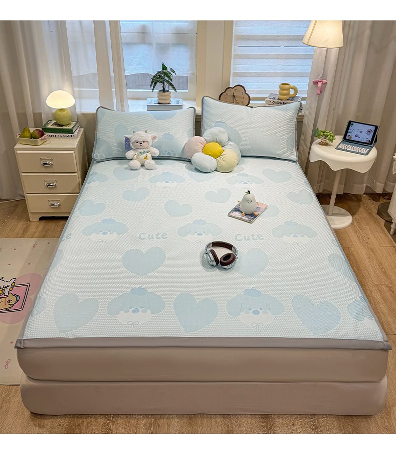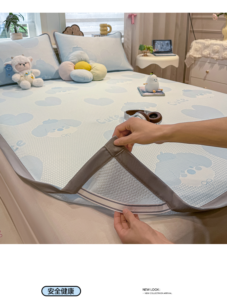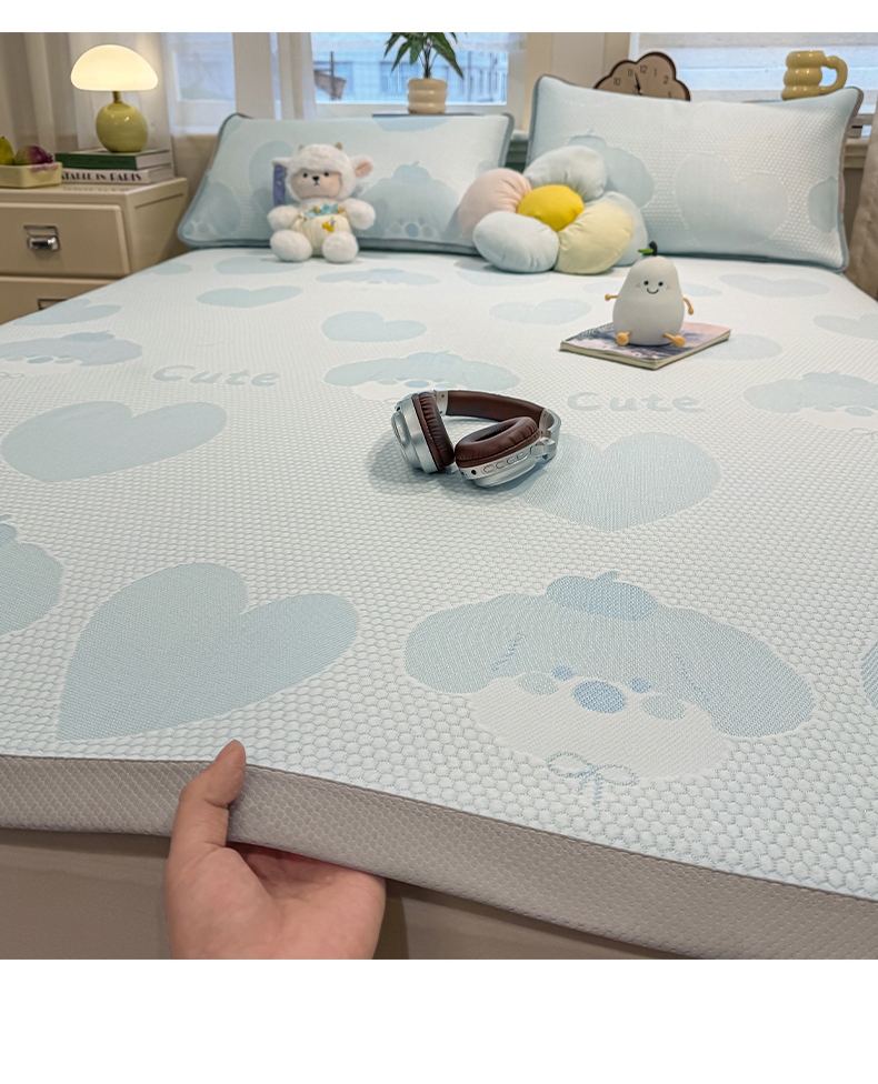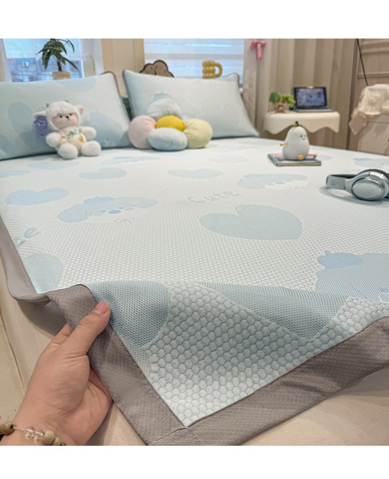 (总)眠势力 2026新款冰豆豆床笠款凉席夏季凉感冰丝软席子,冰皮熊粉-床笠款,冰皮熊灰-床笠款,冰皮熊兰-床笠款,冰皮熊绿-床笠款