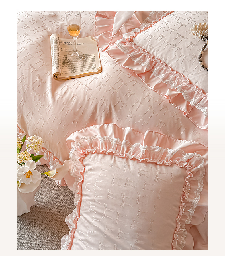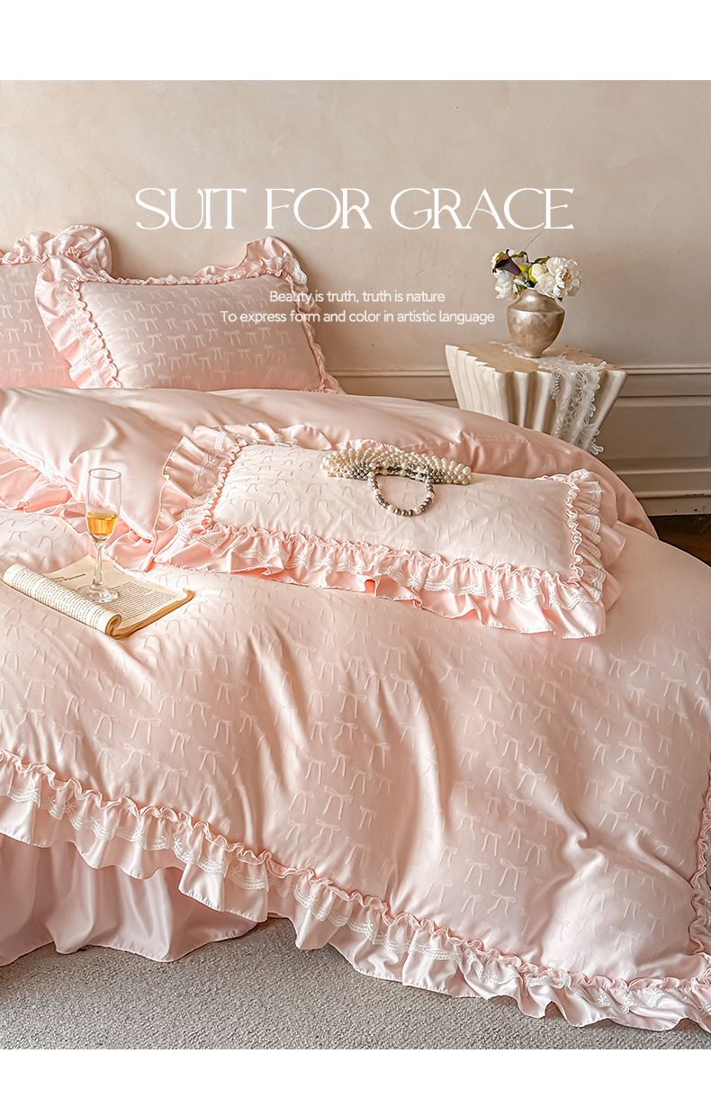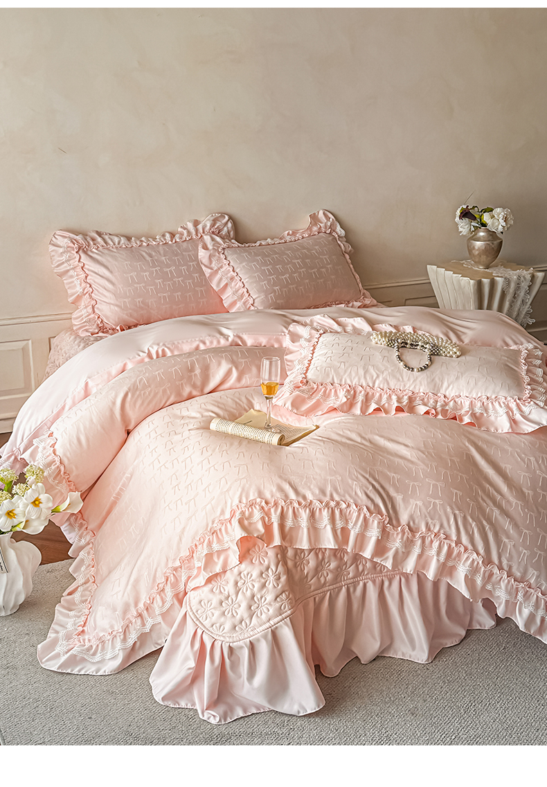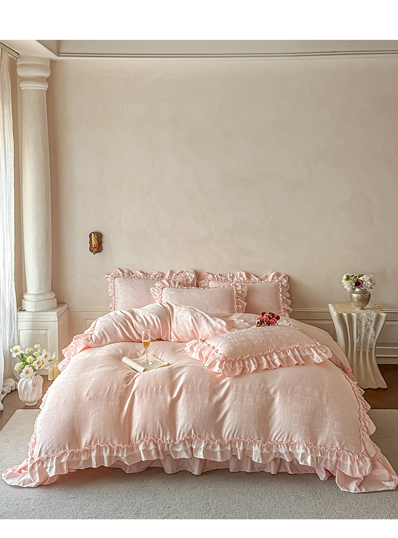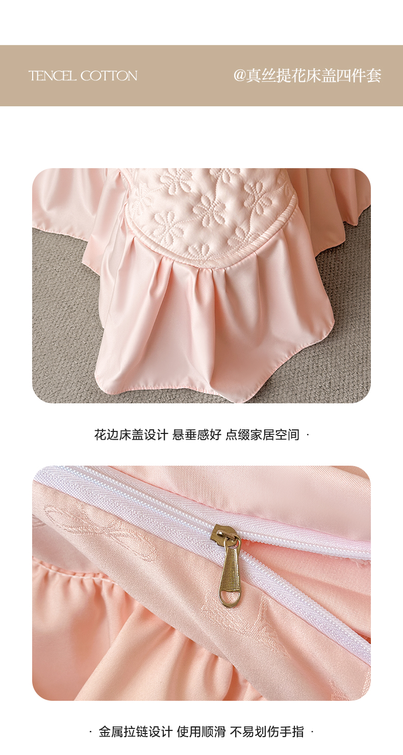 迪梦姿家纺 2026新款春意真丝提花床盖四件套 粉玉