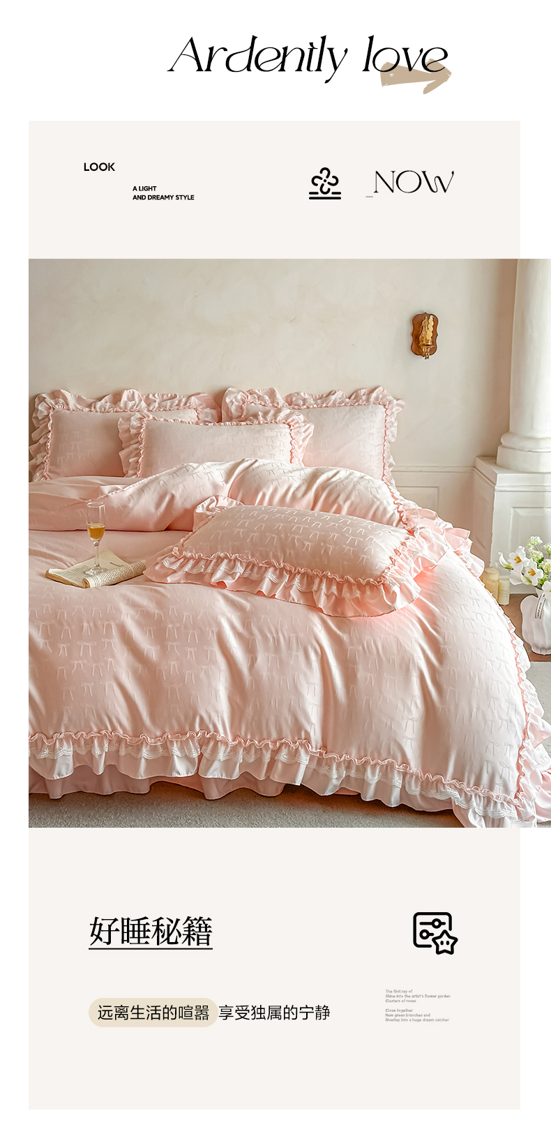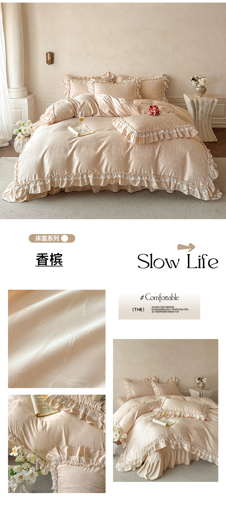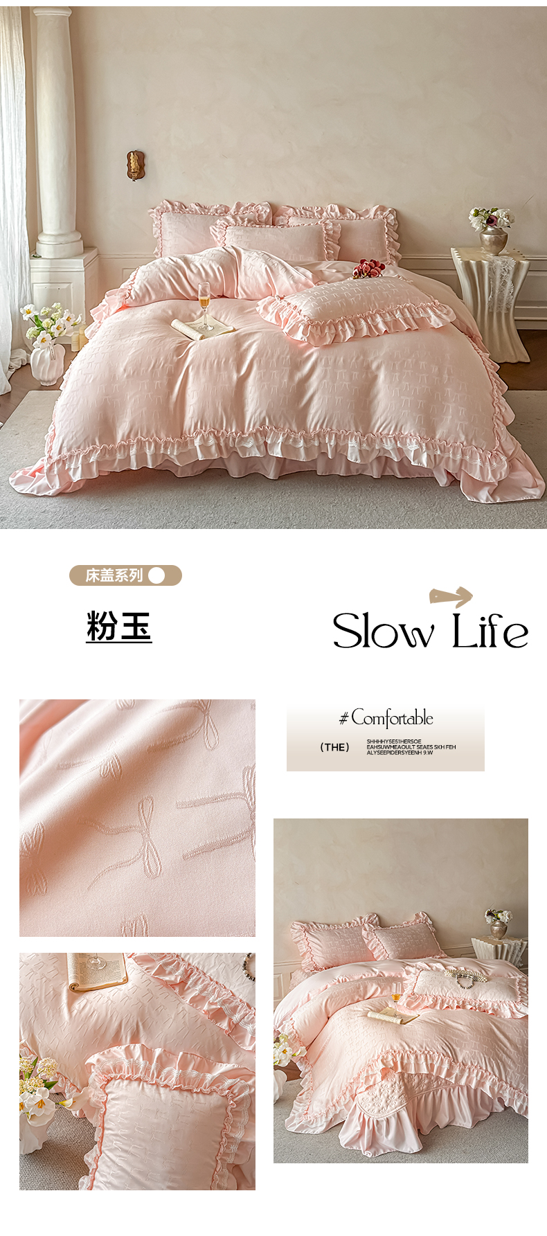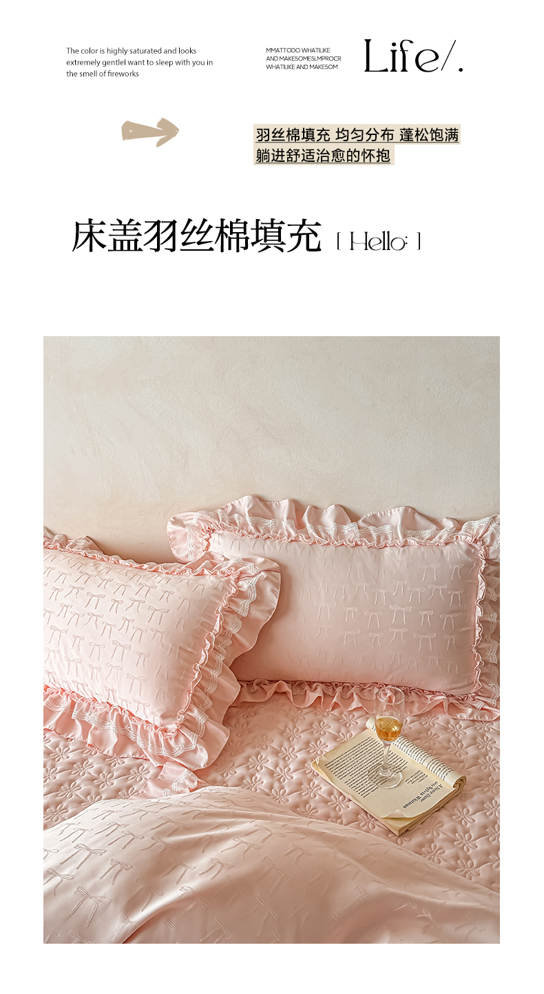 (总)迪梦姿家纺 2026新款春意真丝提花蕾丝款夏被四件套,豆沙,粉玉,抹茶绿,奶白,天空兰,香槟