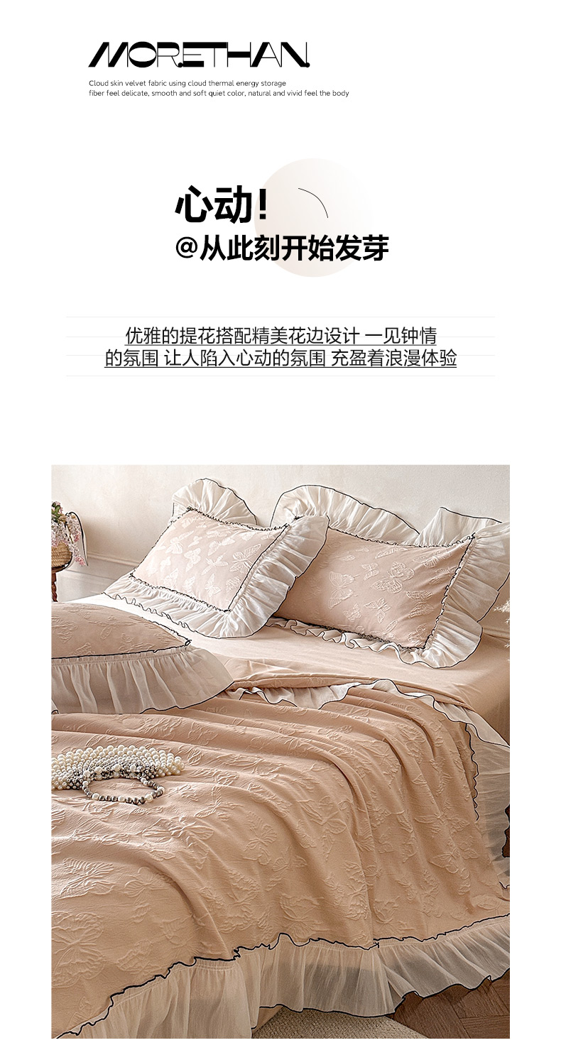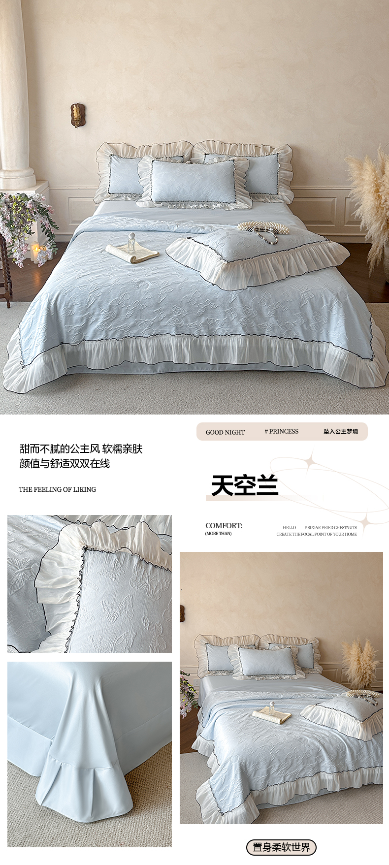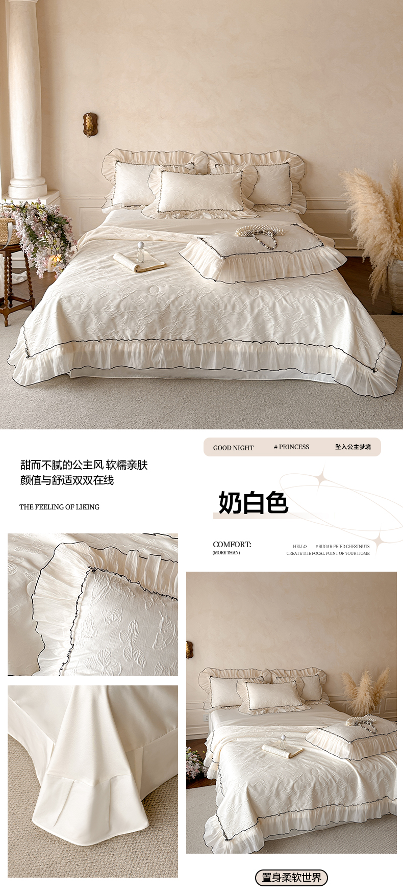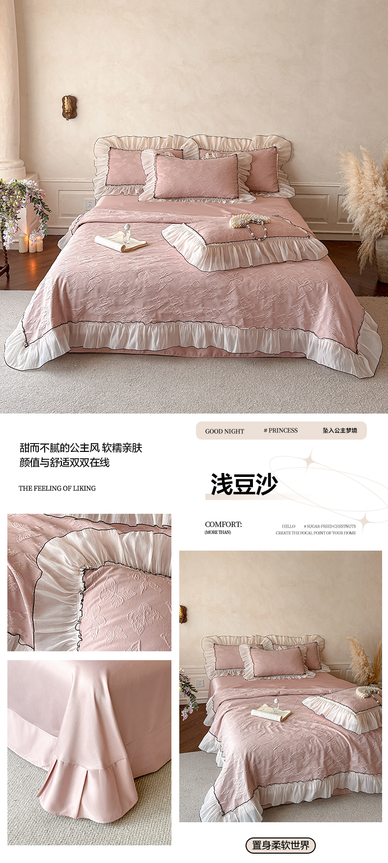 (总)迪梦姿家纺 2026新款春意真丝提花蕾丝款夏被四件套,豆沙,粉玉,抹茶绿,奶白,天空兰,香槟