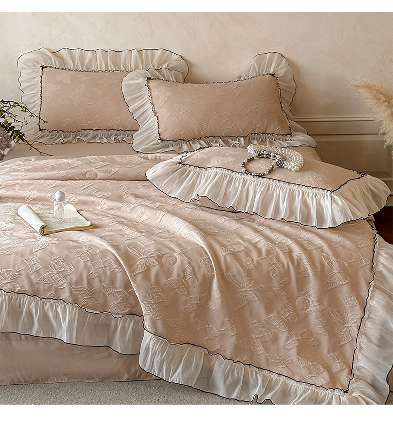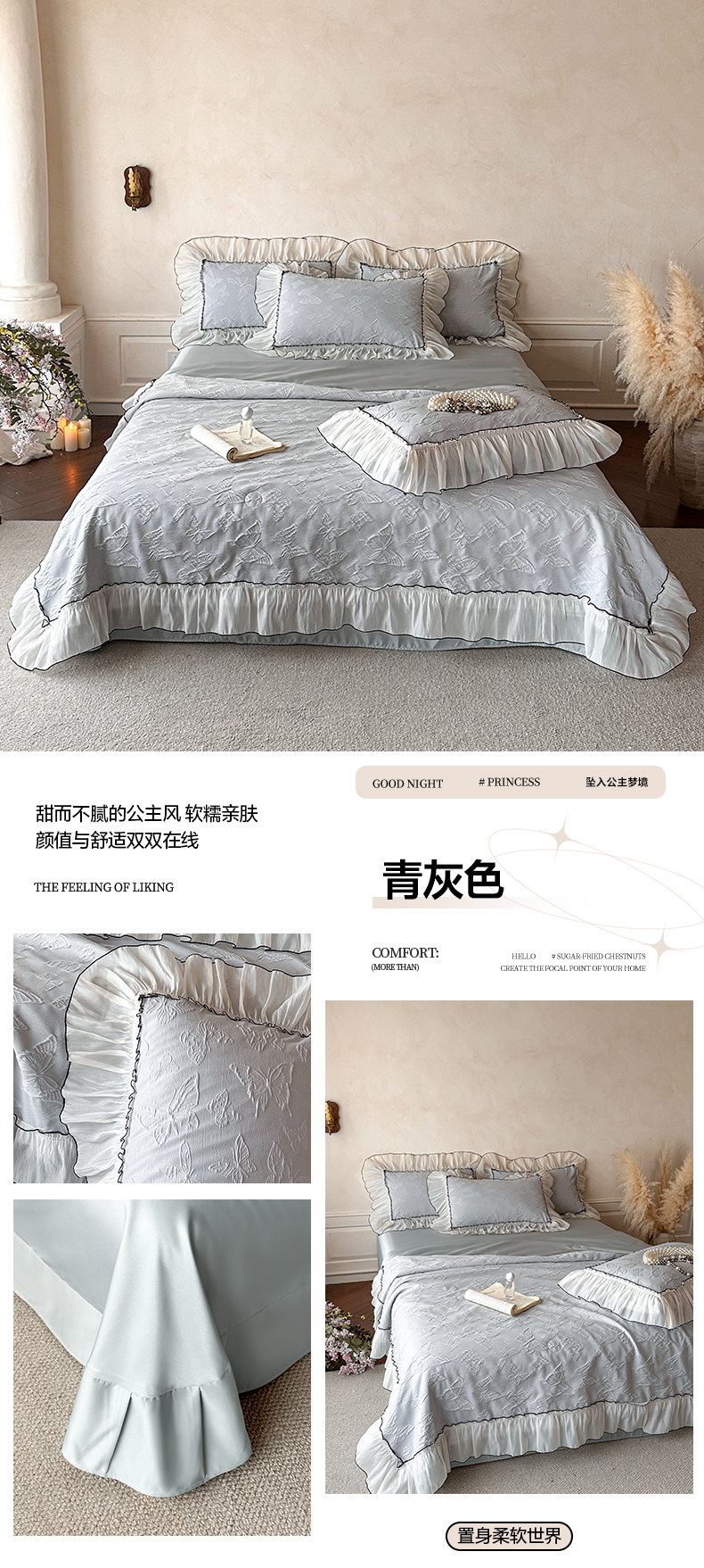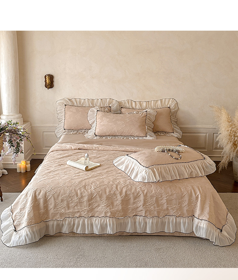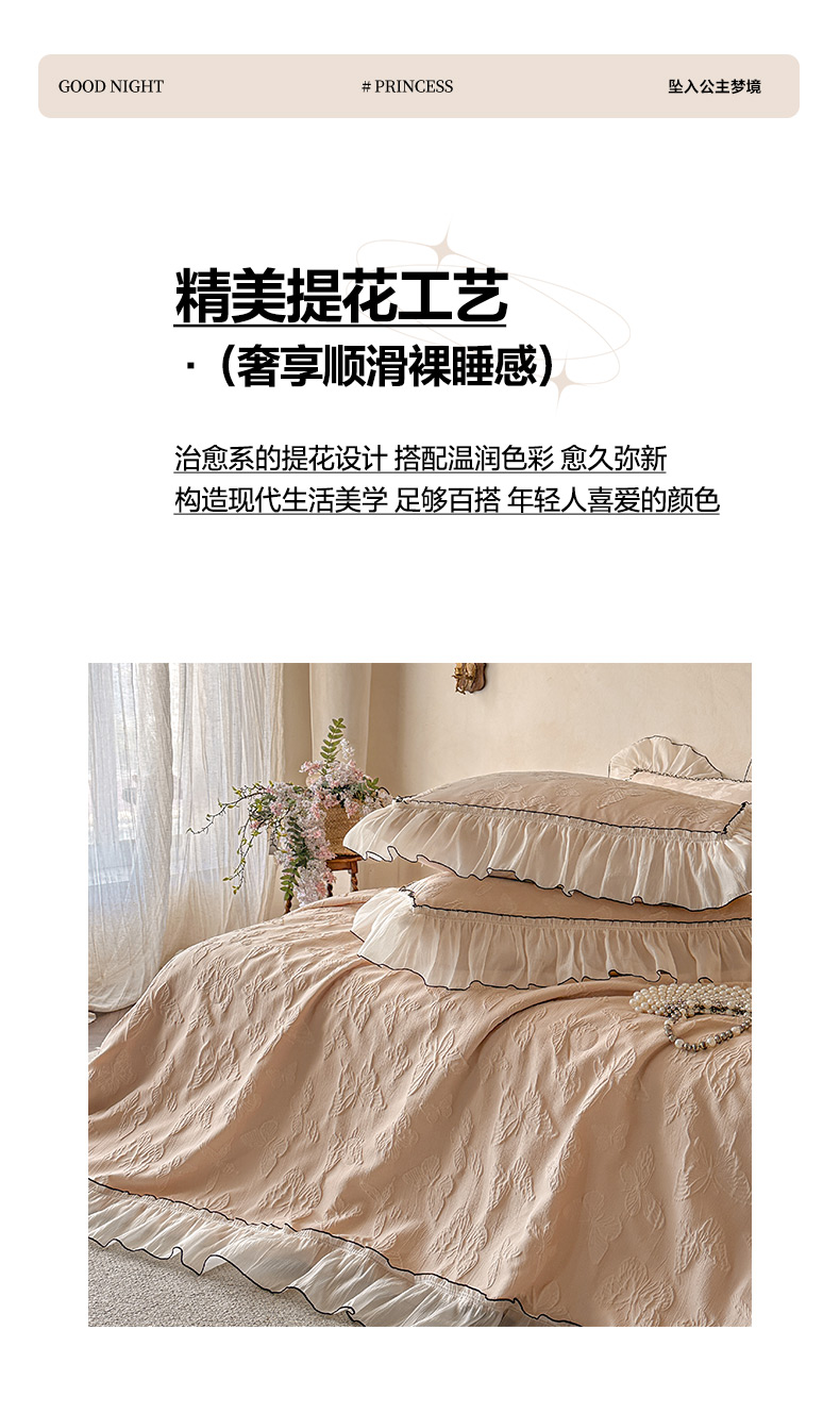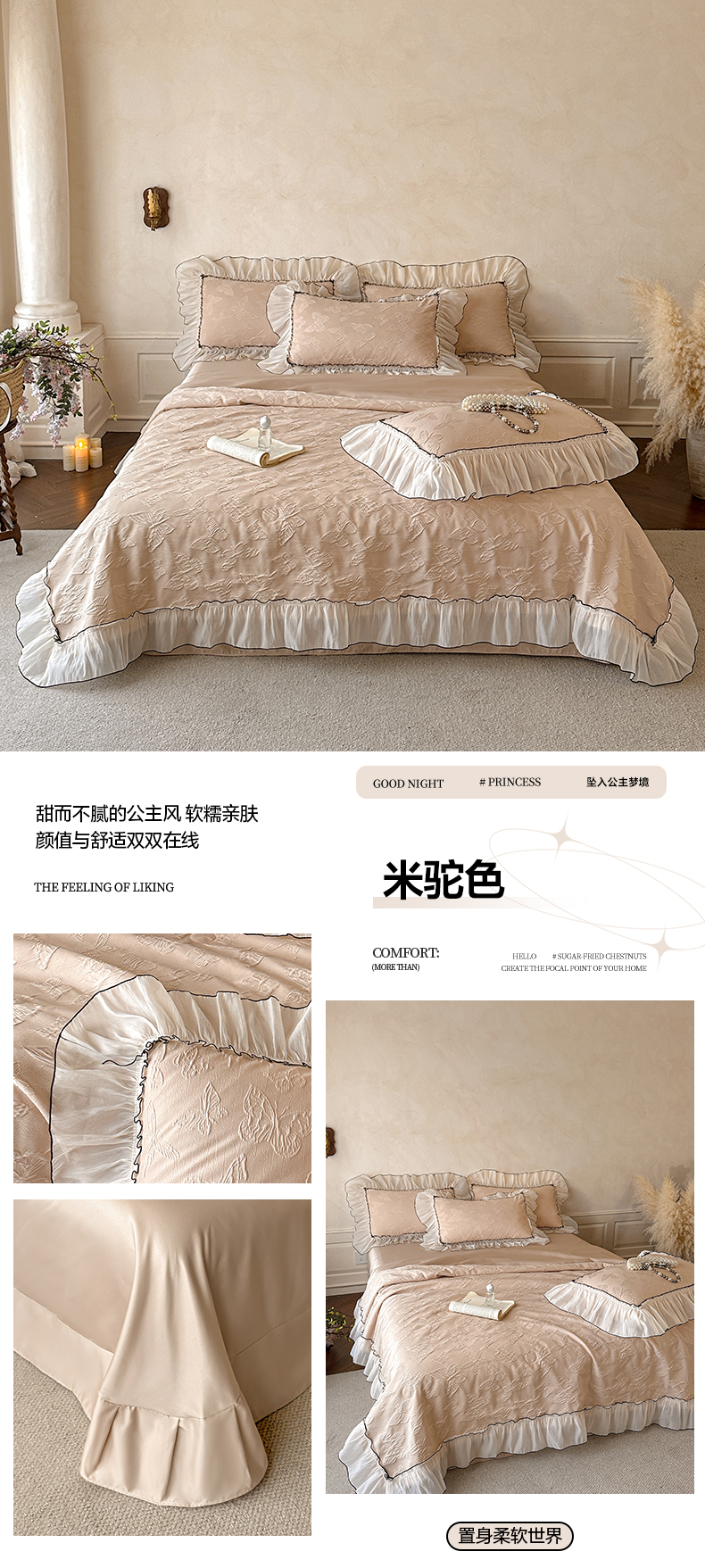 (总)迪梦姿家纺 2026新款春意真丝提花蕾丝款夏被四件套,豆沙,粉玉,抹茶绿,奶白,天空兰,香槟