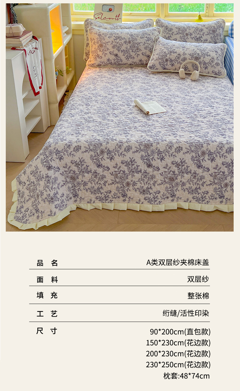 商品名称:(总)默忆 2026新款亲肤舒适双层纱花边宽床盖
