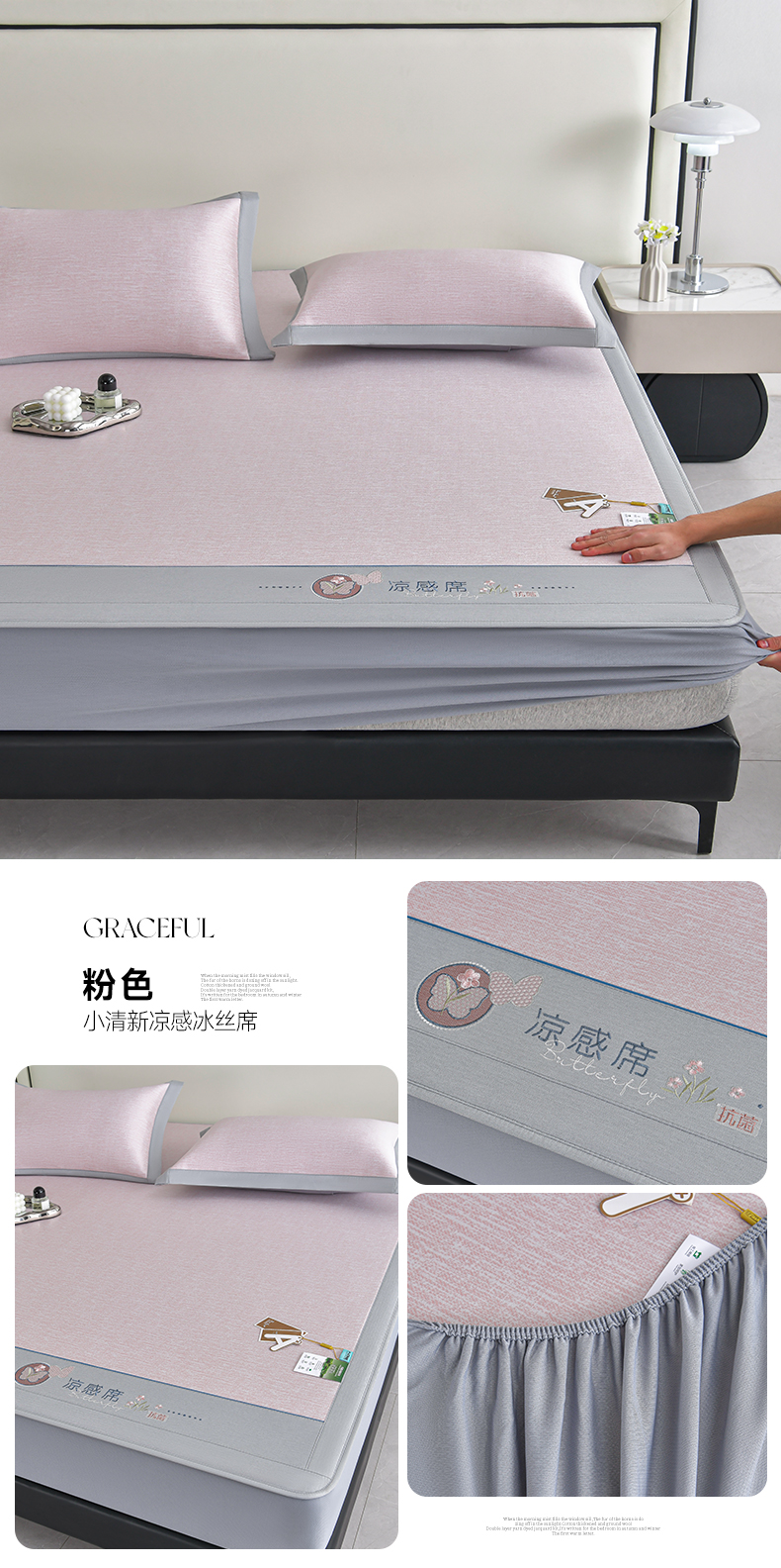 (总)小牛席业 2026新款小清新凉感冰丝席席子凉席-床笠款,粉色,灰色,蓝色,香槟