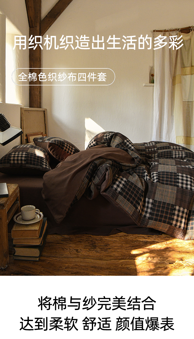 当前位置: 91家纺网 > 商品网购 > 床品套件 > 四件套 > 全棉普通四件套 > (总)山舍家居 2026新款全棉纯棉色织纱布老钱风四件套-威尔士格