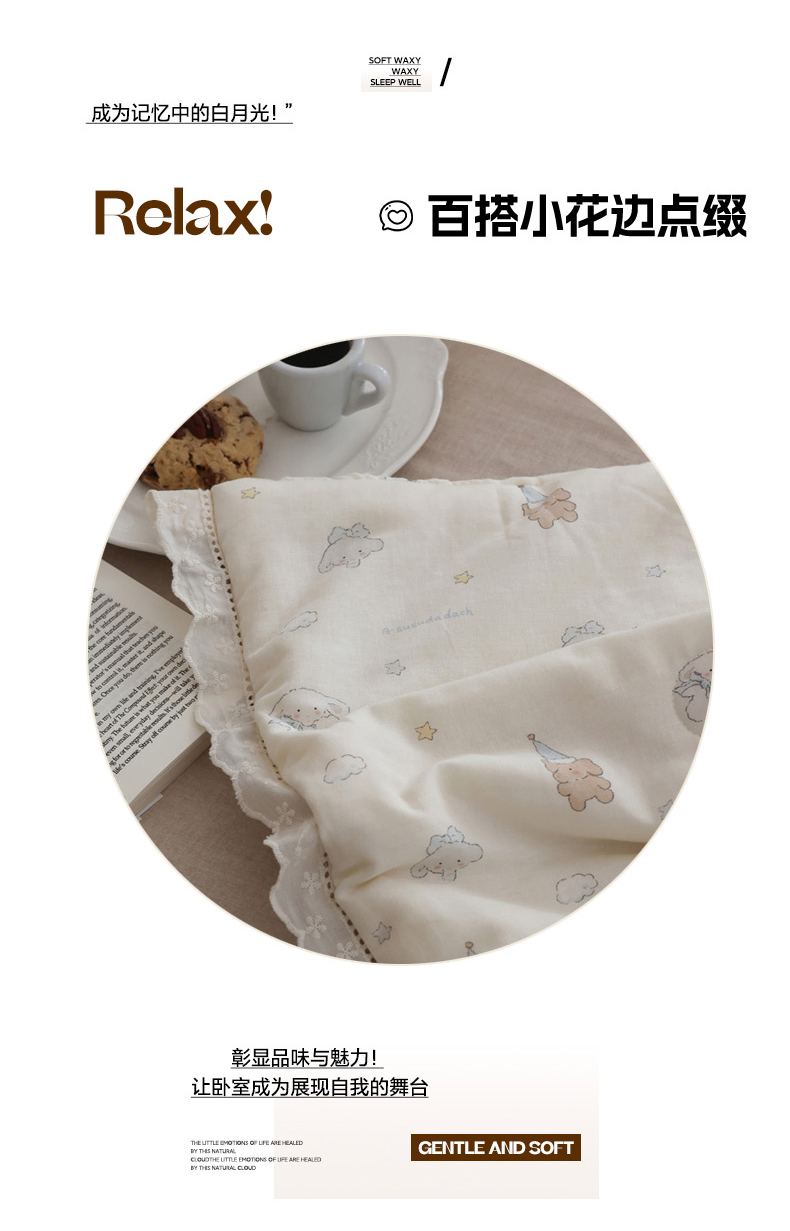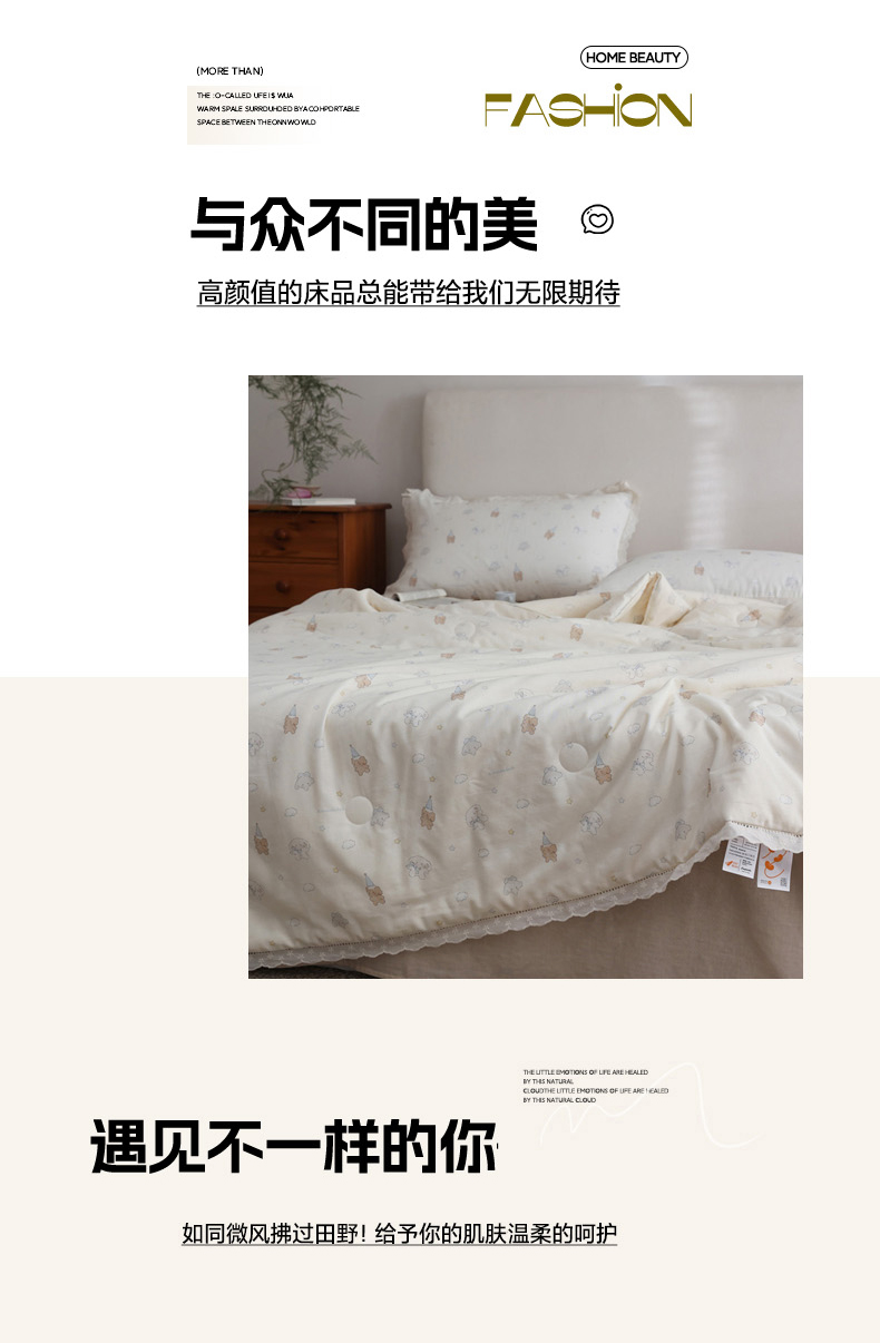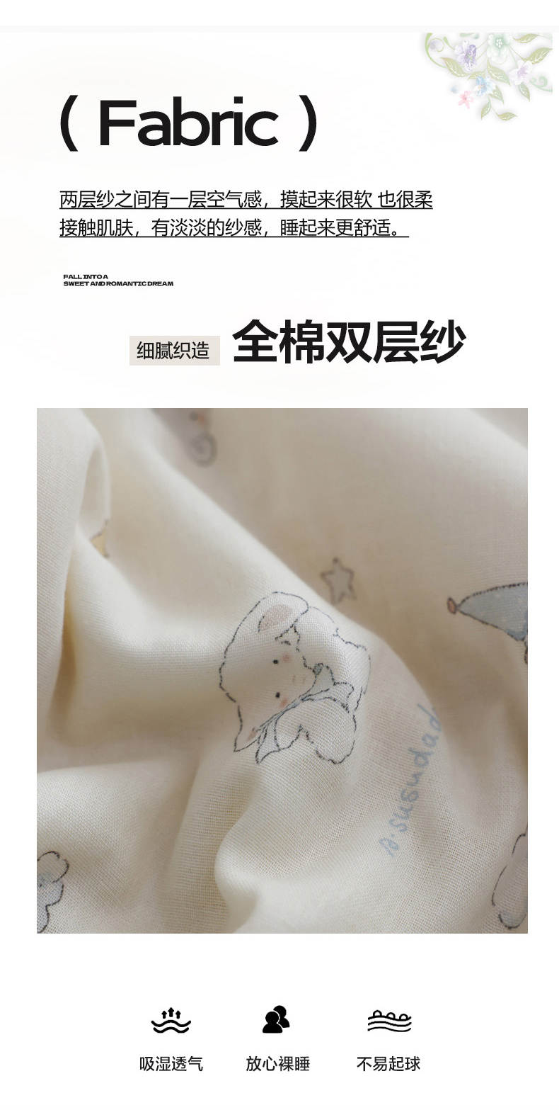 (总)万盛家纺 2026新款全棉双层纱花边印花夏被空调被夏凉被,动物城,简悦,铃兰,曼叶,莫里,浅陌,俏皮小象,素颜,兔子欢喜,小吉象,摇摇木马,月落昙华