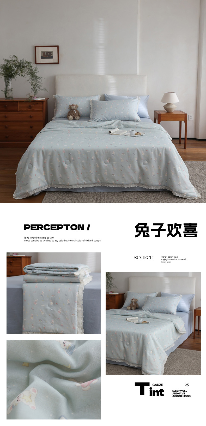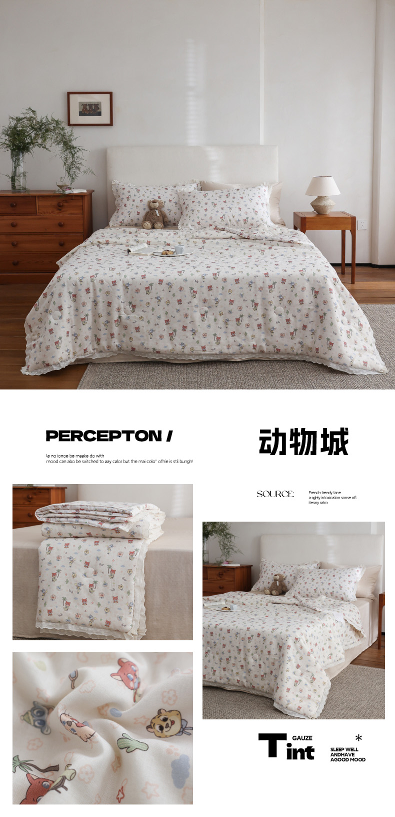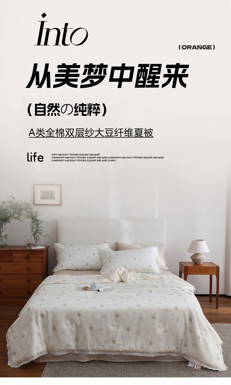 (总)万盛家纺 2026新款全棉双层纱花边印花夏被空调被夏凉被,动物城,简悦,铃兰,曼叶,莫里,浅陌,俏皮小象,素颜,兔子欢喜,小吉象,摇摇木马,月落昙华