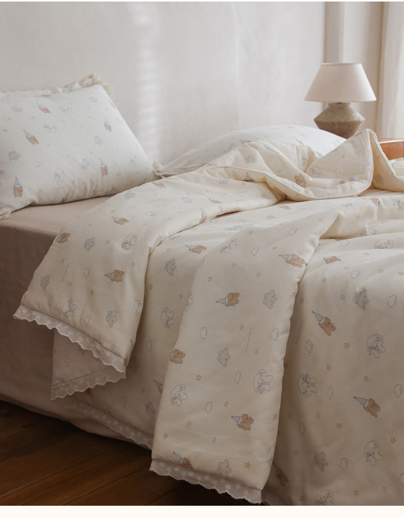 商品名称:万盛家纺 2026新款全棉双层纱花边印花夏被空调被夏凉被 小吉象