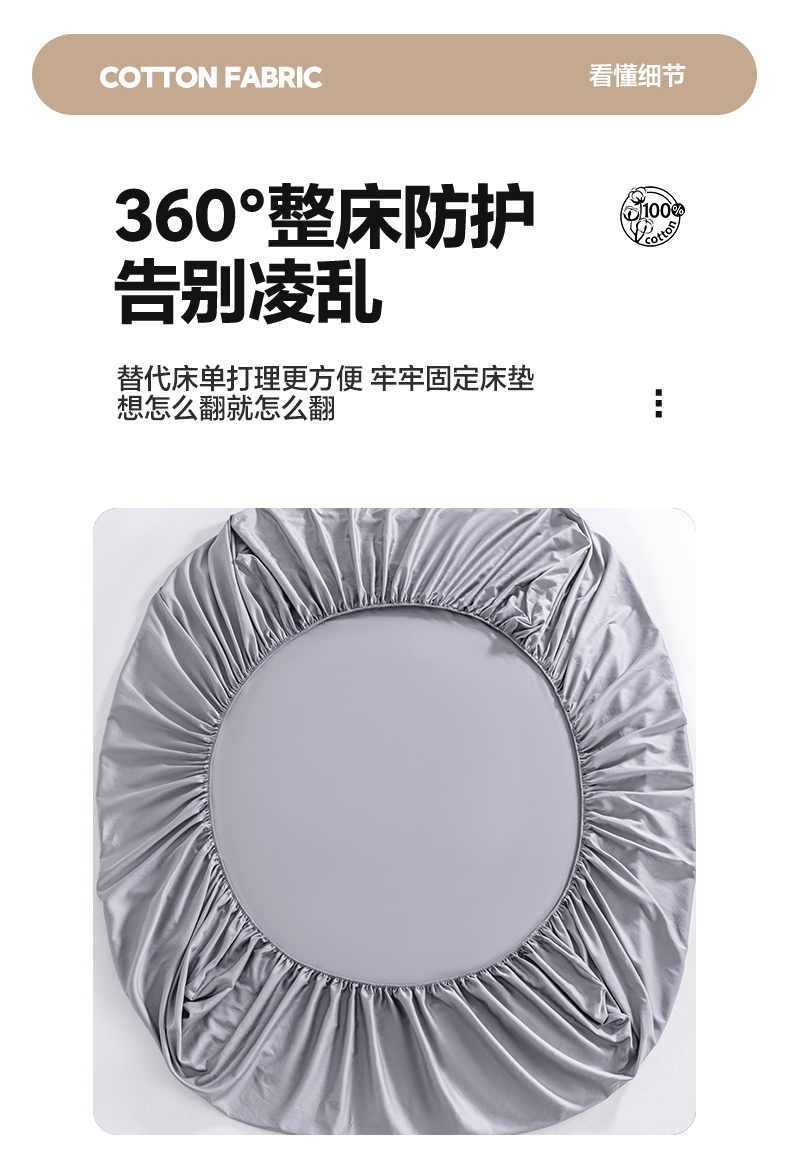 • 91家纺网 家纺一手货源 找家纺 梵心家纺 2026新款60s长绒棉全棉纯棉床笠单品床笠单件 云山灰