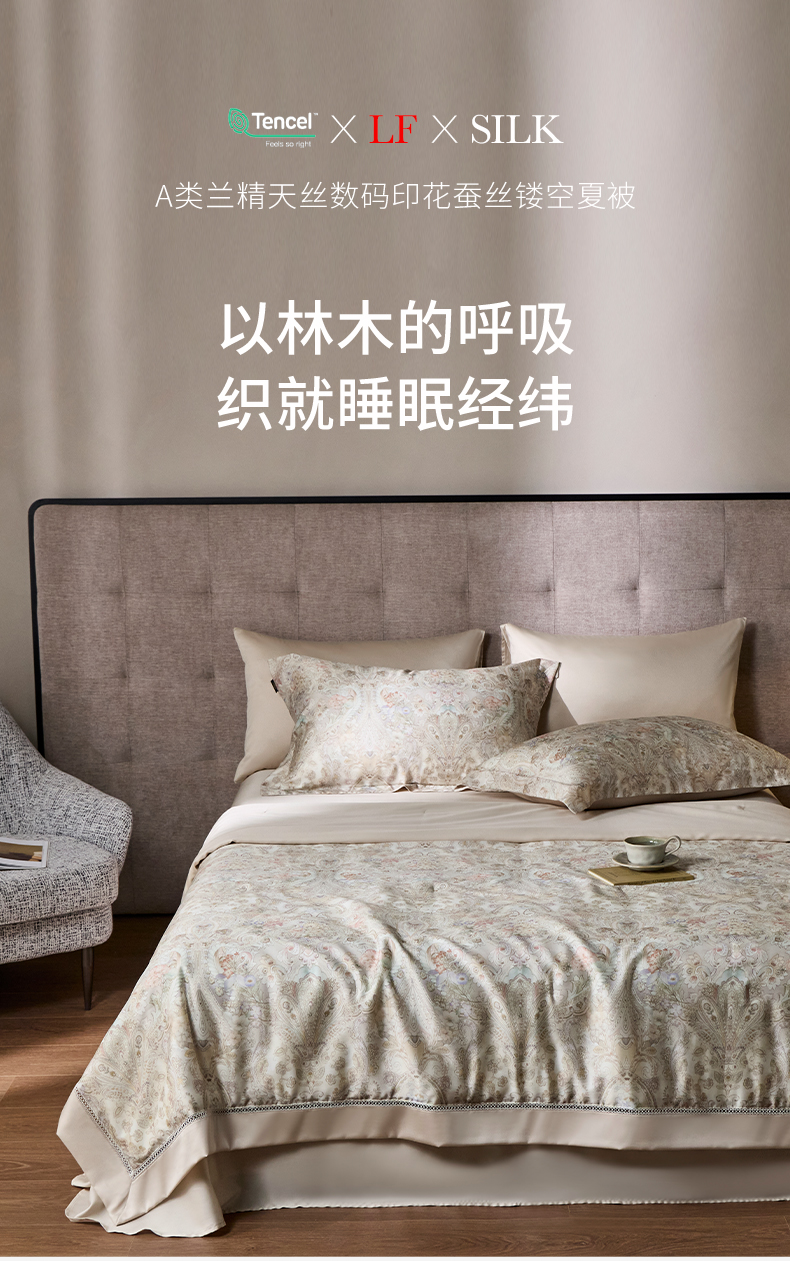 丽笙被芯 2026新款兰精天丝数码印花蚕丝镂空夏被夏凉被空调被 奥瑞莉-绿