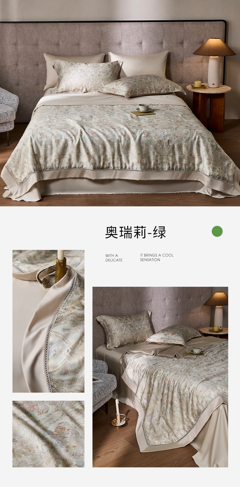 • 91家纺网 家纺一手货源 找家纺 丽笙被芯 2026新款兰精天丝数码印花蚕丝镂空夏被夏凉被空调被 奥瑞莉-绿