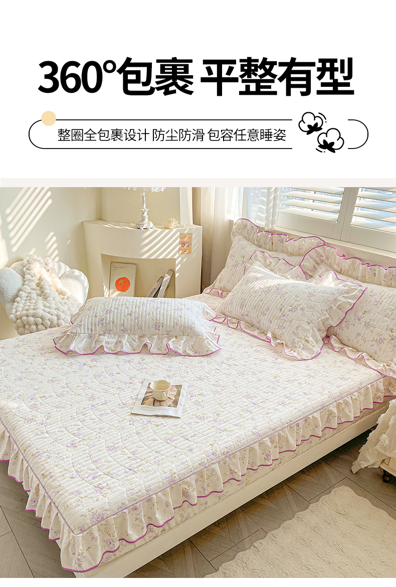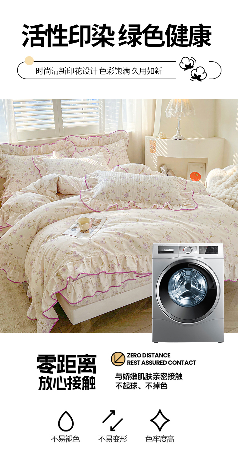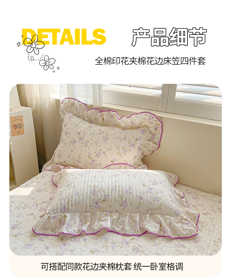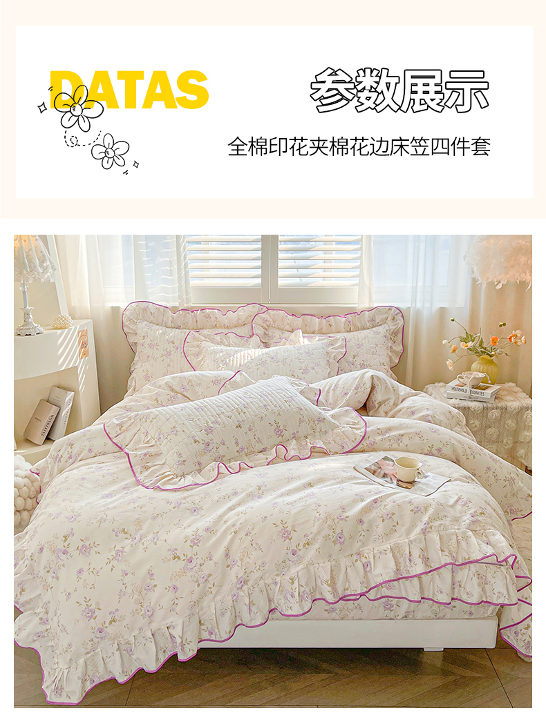 当前位置: 91家纺网 > 商品网购 > 床品套件 > 四件套 > 全棉普通四件套 > 宜凡家纺 2026新款全棉印花夹棉花边床笠四件套 海棠之恋