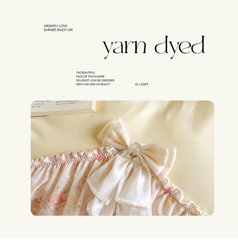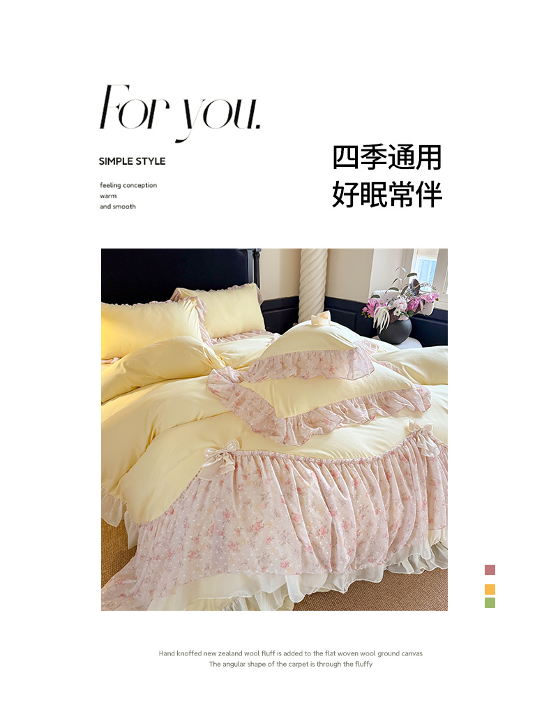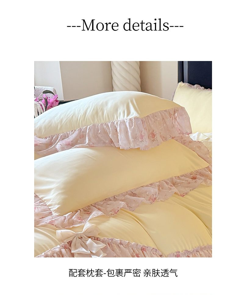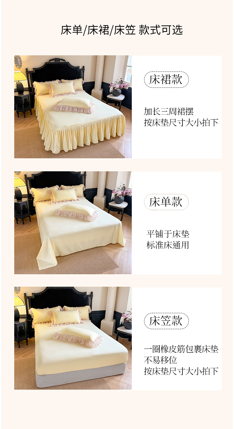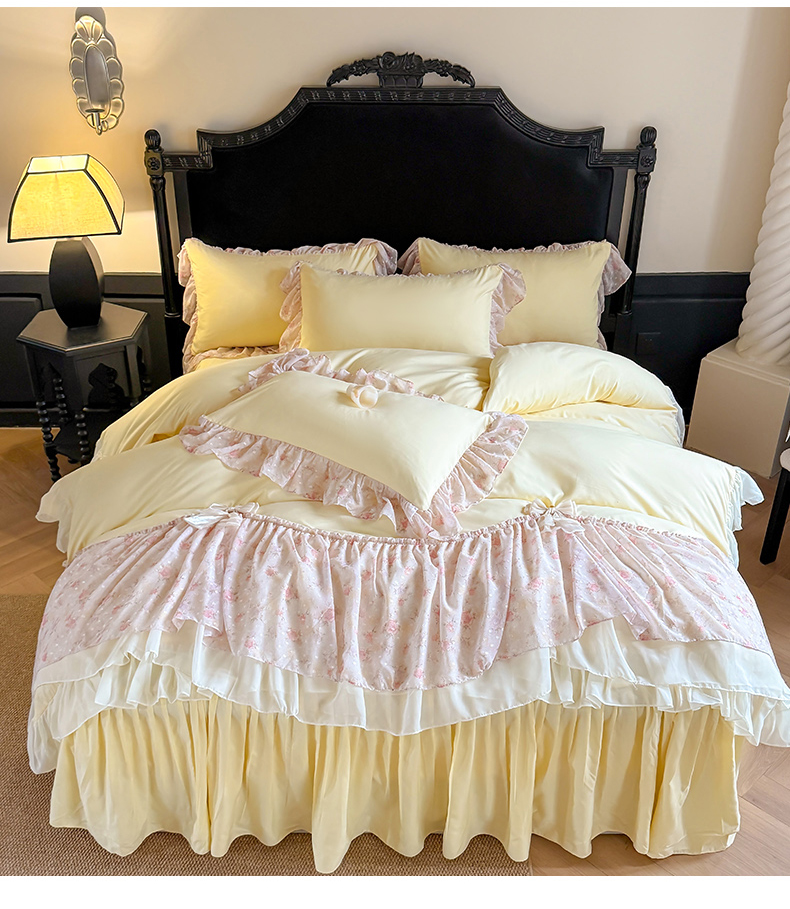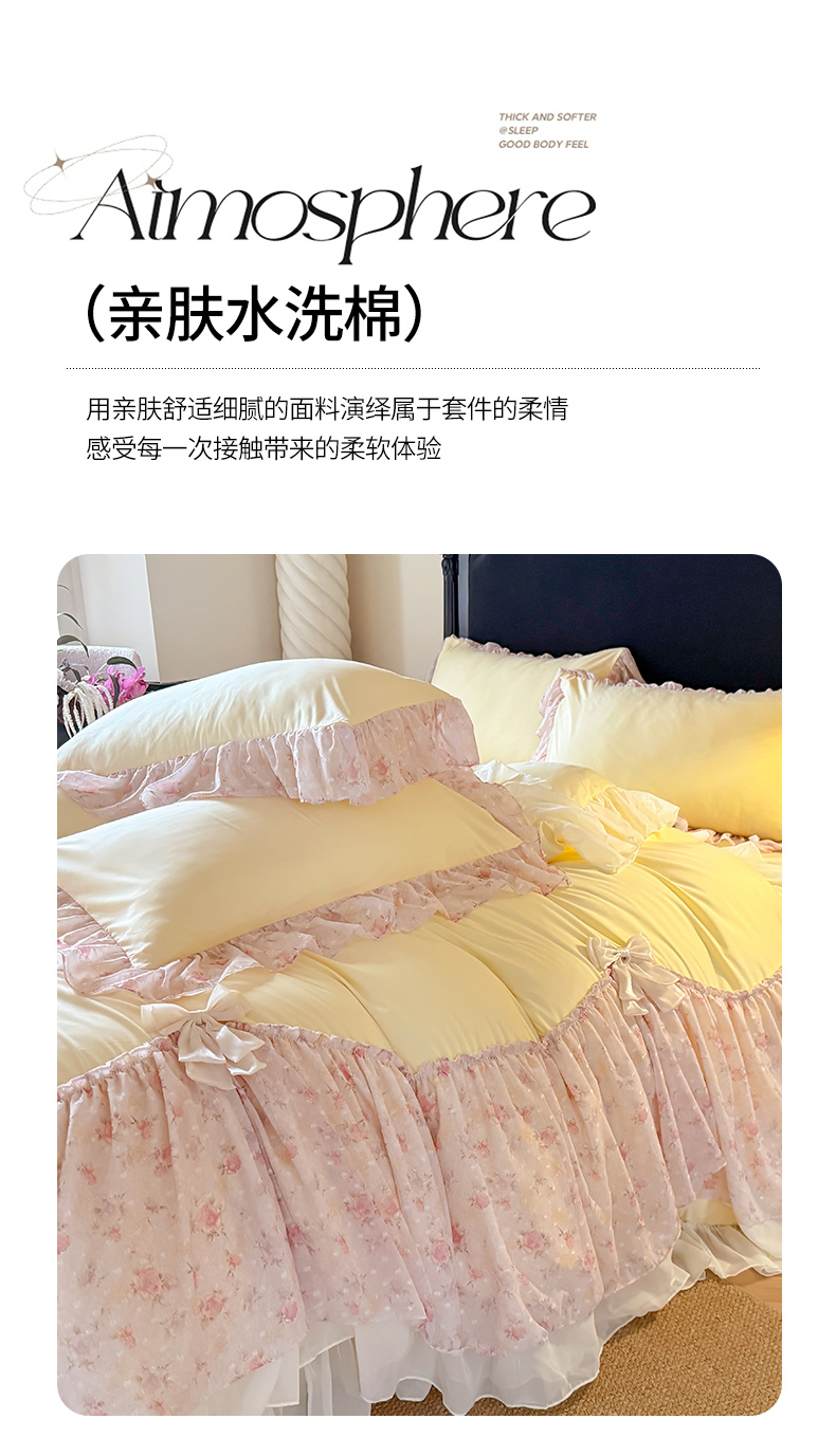 当前位置: 91家纺网 > 商品网购 > 床品套件 > 四件套 > 其它四件套 > 富盛家纺 2026新款水洗亲肤棉雪纺蕾丝刺绣法式床裙韩版四件套 浪漫主义-黄