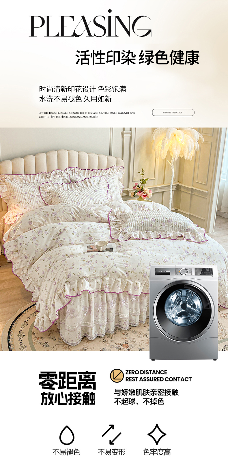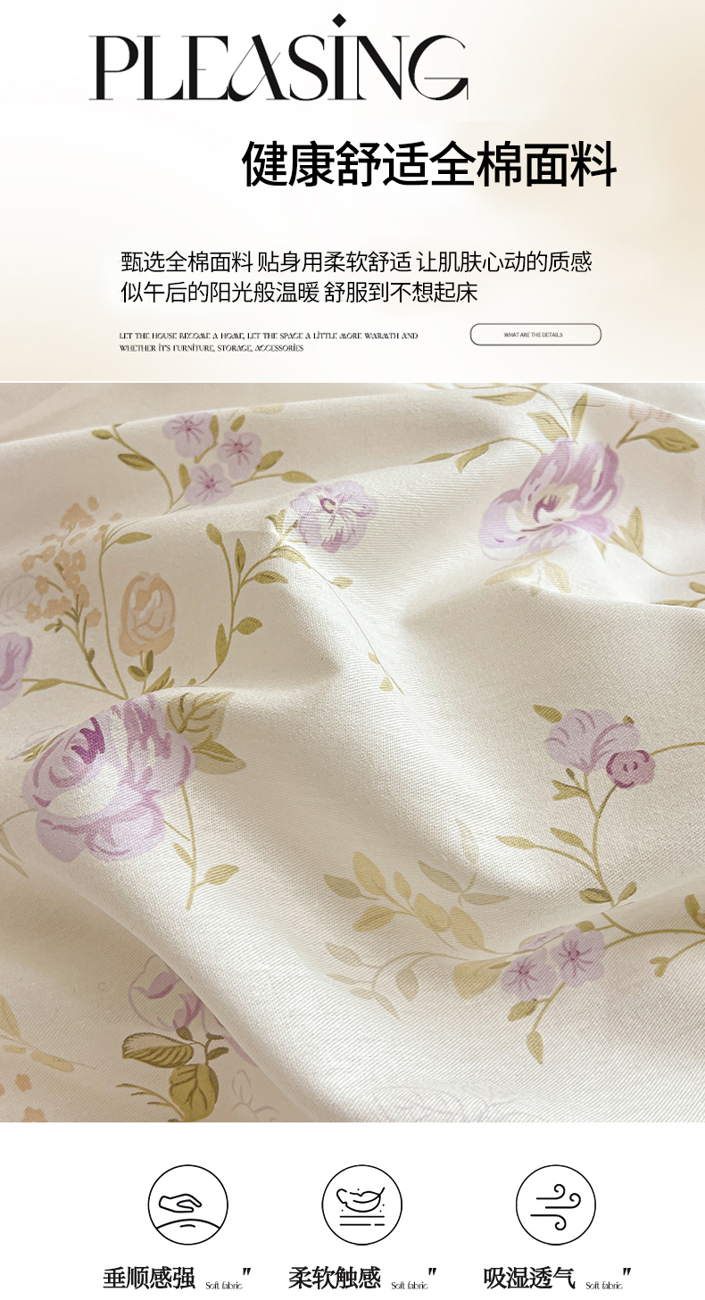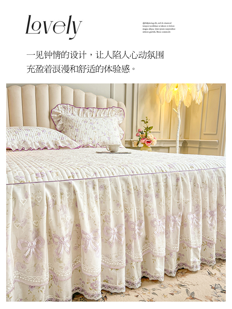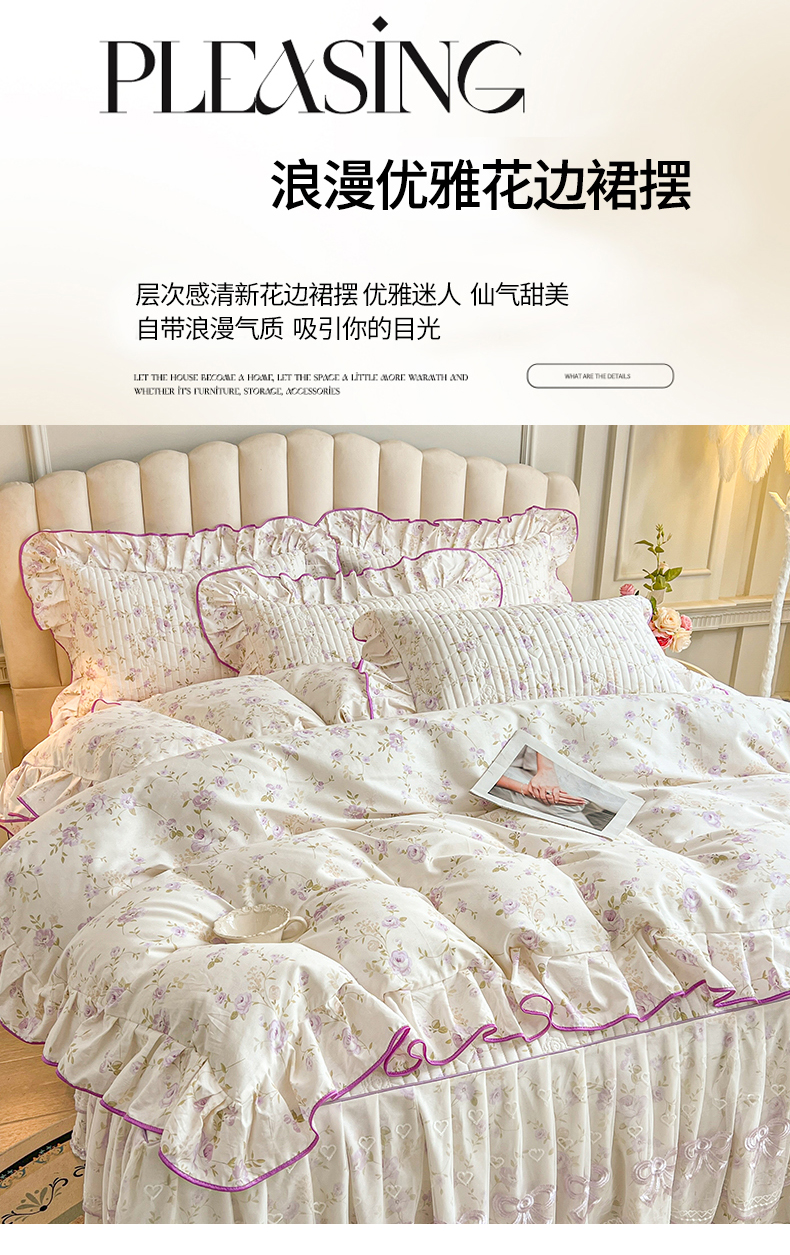 当前位置: 91家纺网 > 商品网购 > 床品套件 > 四件套 > 全棉普通四件套 > 宜凡家纺 2026新款全棉印花公主风夹棉床裙四件套 海棠之恋