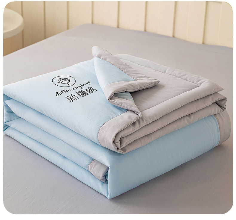 商品名称:几禾 2026春夏新款纯色水洗棉双拼夏被新疆棉花被夏凉被空调被被子被芯 双拼-蓝灰