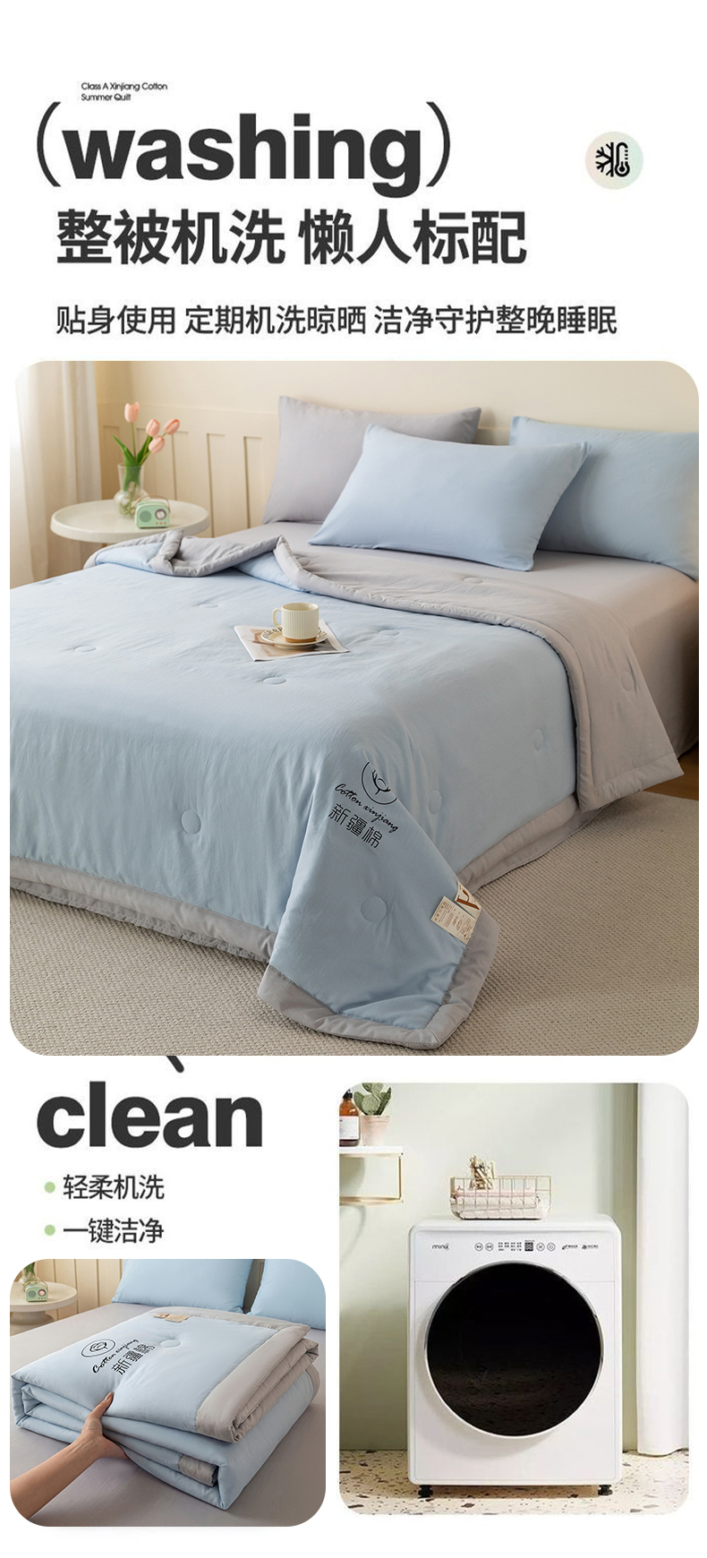 几禾 2026春夏新款纯色水洗棉双拼夏被新疆棉花被夏凉被空调被被子被芯 双拼-蓝灰