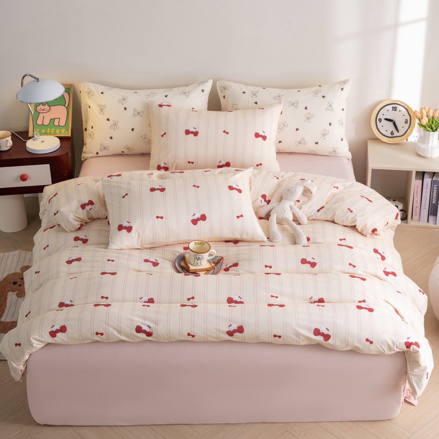 (总)梦可莱家居 2026新款全棉纯棉针织棉印花可爱卡通系列四件套,爱心曲奇,爱心熊,波点狗,蛋糕熊,动物乐园,蝴蝶卡,蝴蝶猫咪,蝴蝶兔,七彩花,云朵灰